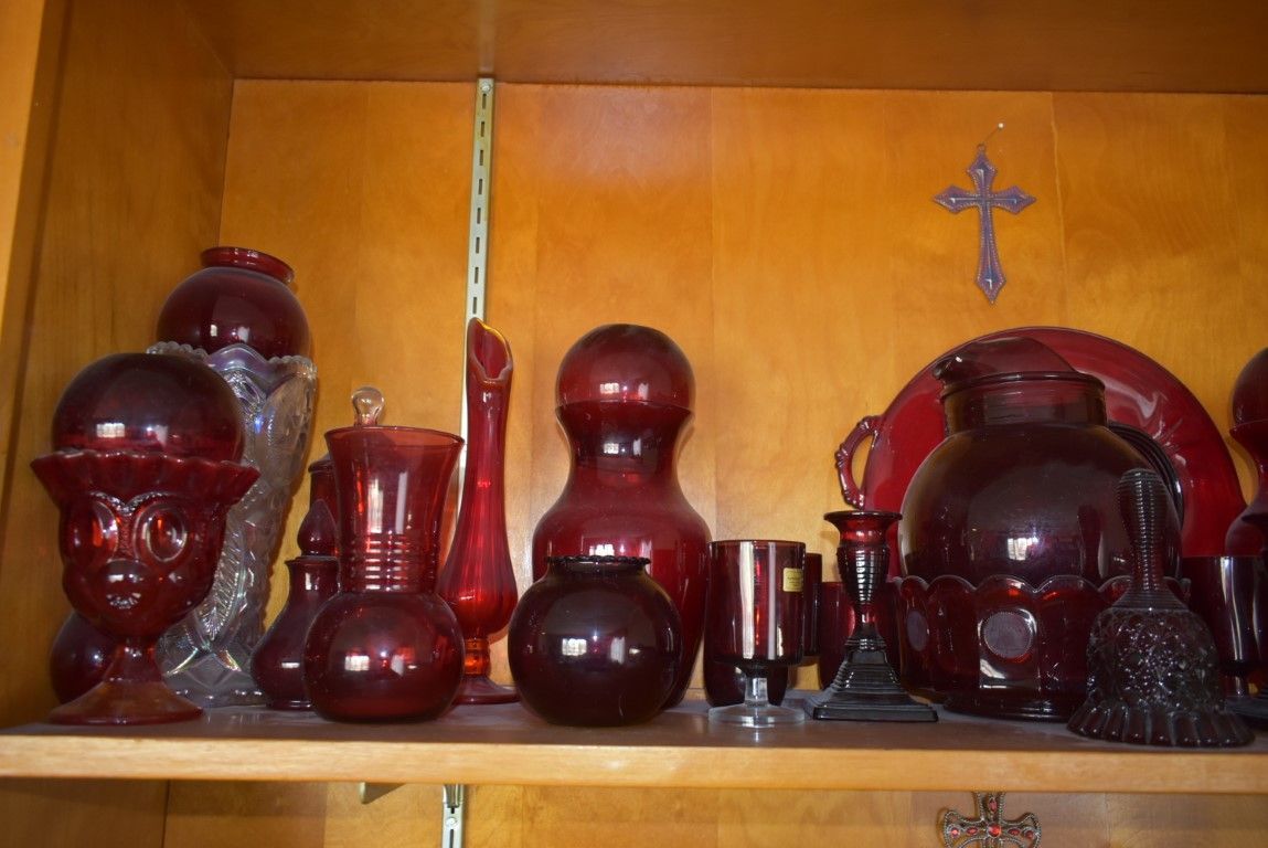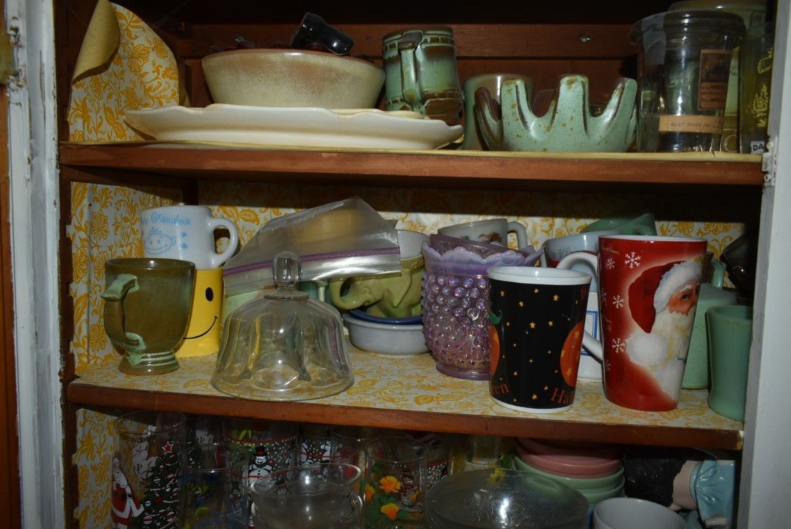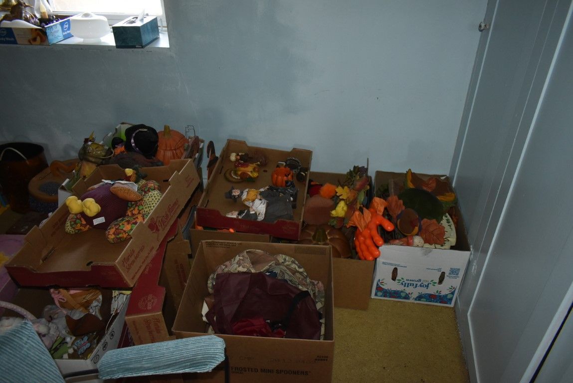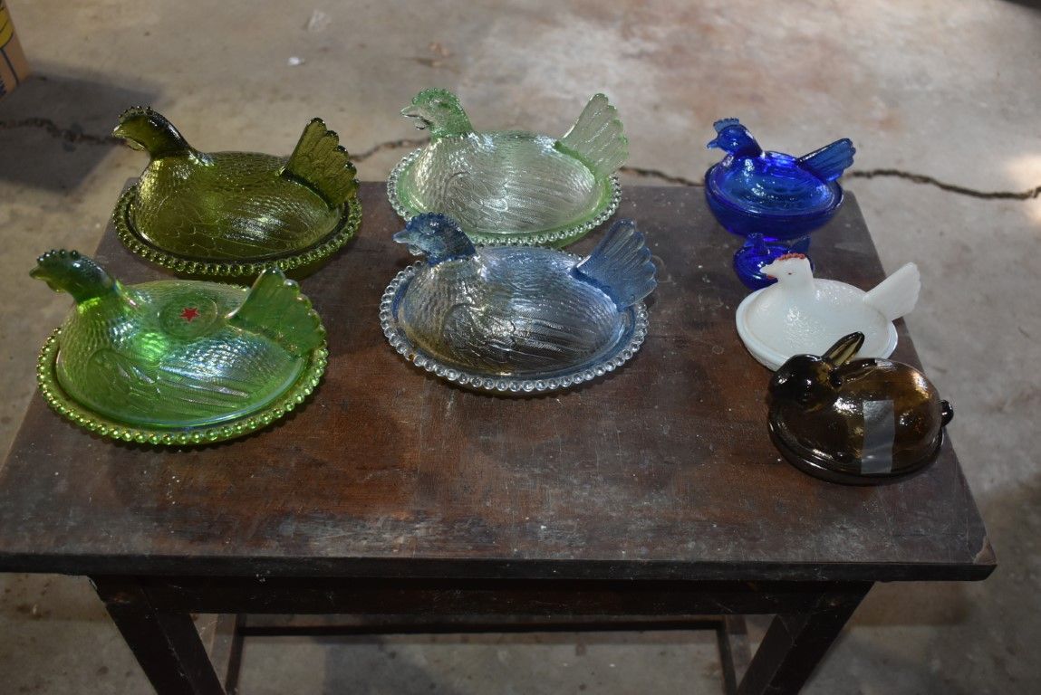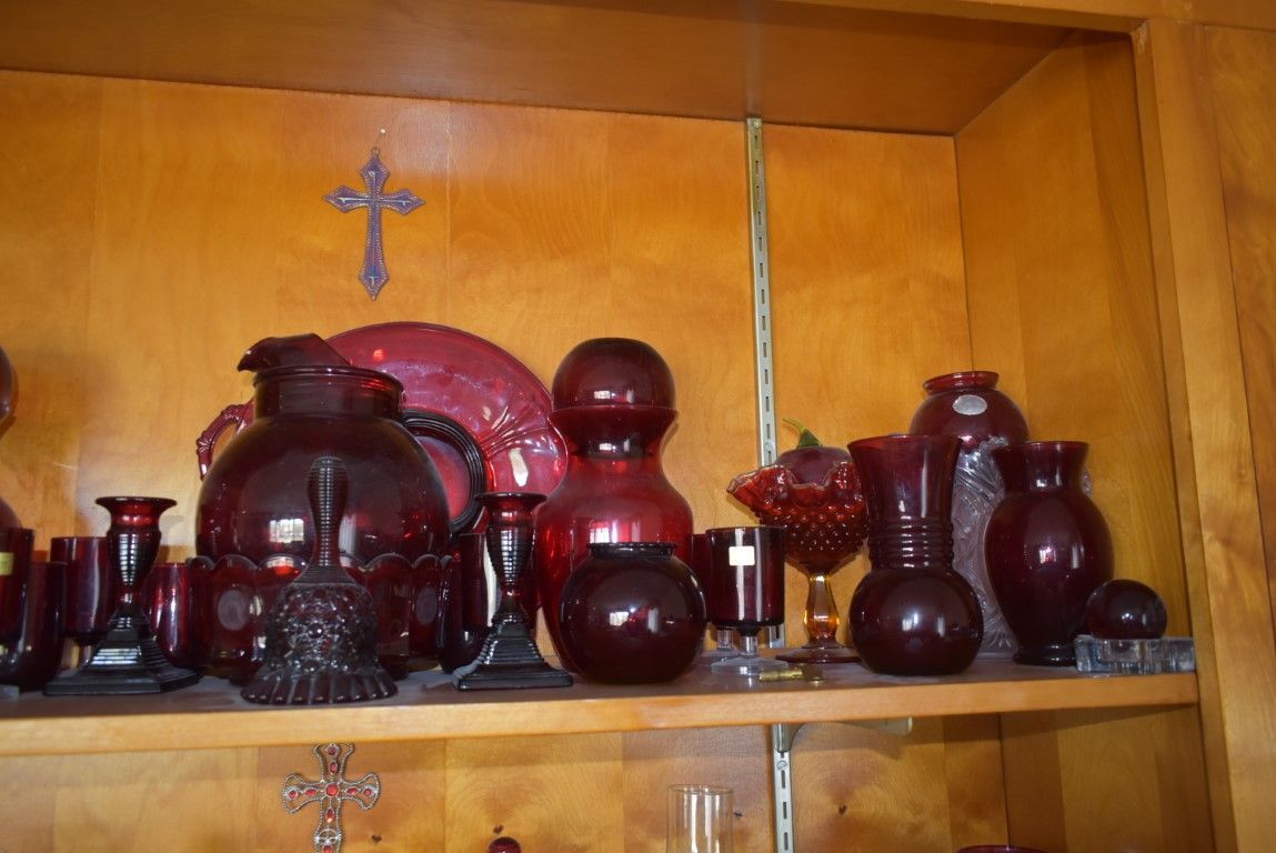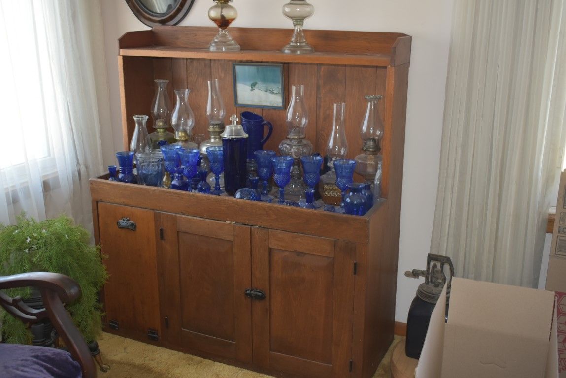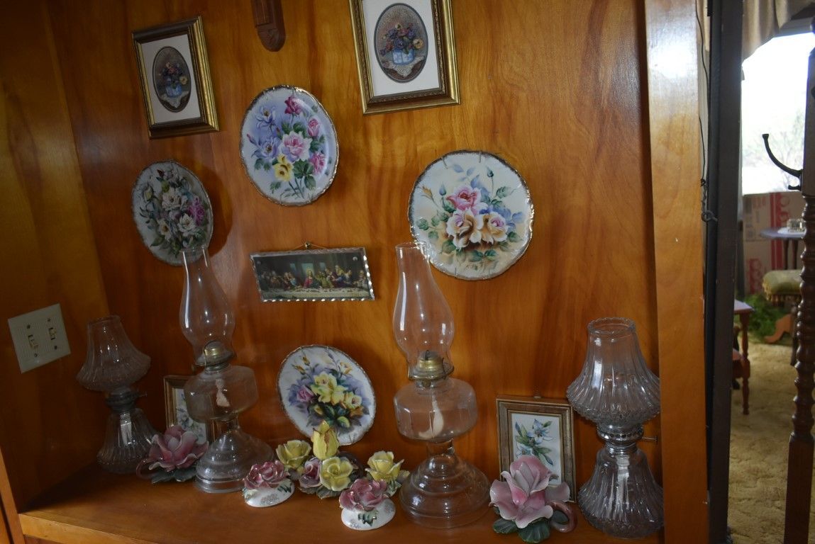 Glassware-Household-Misc: USA Vase, lots of Frankoma glassware comma, Arner’s pitcher and wash basin, 7 Avon Fostoria George Washington cobalt blue goblets, blue cobalt glass measuring pitcher, 2 vintage blue cobalt glass violin bottles, several other cobalt blue glass items, Antique Rayo oil lamp little plated brass, Ruby red glass Fenton collection, Lots of Wall Hangings/decorations, Several hen candy dishes, several mini hen candy dishes, glass rooster, the glass butter dish, vintage Murano art glass vases, 10+ Beam whiskey decanters, Gold 15” Elvis decanter, Edwin Knowles China pitcher and bowl set, large collection of Cardinal birds, 13 albums of gold replicas of stamps (5 are Golden Replicas of US stamps), Tapestry Wall picture, Wall mounted kerosene lamp, hanging elephants wall chime, , Ansonia gingerbread parlor clock 22T x 14w, Wall mirror 52 by 20, old Last Supper picture, Ornate wall mirror 17Wx33T, 45 inch round table needs repair, Large wood framed mirror 45x36, Gold framed wall mirror with shelves 27x23x5, ENC Comet laser range finder, Two Clay County heritage books 1990, history of Cass County Nebraska book 1989, The book of Cowboys, The book of Indians, two orange/black Clay Center high school yearbooks 1914 and 1922, Tiger yearbook 1942, large 50 years of movie posters book 1911 to 1955, wooden magazine racks, 1989 art mark cast iron doorstop, miscellaneous cookbooks, clear glass cat candy dish, Seth Thomas wind up wall clock, brass standing floor lamp, large wall mirror with three panels 54 long by 12 1/2, Lefton cardinal wall decoration, child's tea set, 9 thimble sets in shadow boxes, 2 Thoven Music boxes made in Switzerland, Warlock metal door stop, set of Louis L’Amour hardback books (120), Puzzles, Christmas Books, Vintage come brush mirror set, double globe hurricane lamp pink rose, gold framed mirror, shark vacuum sweeper, cast cross w/candle holder, Lots of misc costume jewelry, RR lantern, Harvest Storm combine picture, Lots of Christmas decorations, porcelain dolls, several pedestal fans, Cast 26 inch pump Jack, anodized aluminum teapot, ninja pressure cooker, Keurig coffee Brewer, lots of stoneware dishes, lots of cooking utensils, set of USA bowls, Set of four cracker barrel stoneware with cardinal design, rival crock pot, malt blender, Over 40 Nutcrackers, Lots of pictures, Lots of bedding and quilts, 50” flat screen TV, Turkey call hint annual governors annual one shot Turkey hunt April 13 1996, victory key lock safe, round wood table 4 foot diameter 21 inches tall, square dinner table with round corners 42 by 42, doing pool lots of collectible plates, Kriss Kross stropper and razor device, Dozens of collectible glass eggs, 50th anniversary D-Day zippo lighter, white clay tobacco pipe, marble swan set, new Wentzel Dutch oven, new cast iron skillets, cast iron cookware wood box, Wood ammo box, Wood upright storage cabinet 68x19x13, Shadow box w/Indian figurines, set of honing rods, Old sharpening stones, Mahjong Set in case, 3 JD steins, Sylvester cookie jar, Chess Game table 28x28, 55” flat screen TV, 4 dr metal file cabinet, 2 Dr. wood file cabinet, several kerosene lanterns, electric stove heater, antique table, round end table, diameter, can of canes and walking sticks, Brass spit tunes, raising the flag at Iwo jima sculpture, , China glassware, set of nun chucks, Bucket of lead weights, Variety of wood crates, Wood clamps, Misc fishing poles, They were antique metal ammo boxes, metal pink high chair, animal leg traps, Misc shoe repair items, 8’ stock tank, water hoses, Pile a rough cut lumber approximately 30 feet long, miscellaneous yard art, six or more large canners, yard sundial freestanding, Various outdoor flower pots, a pair of brass goblets, carnival glass dishes, mining boxes say 40 fuse on side, old trunks, cheese boxes, Many more items to unbox.