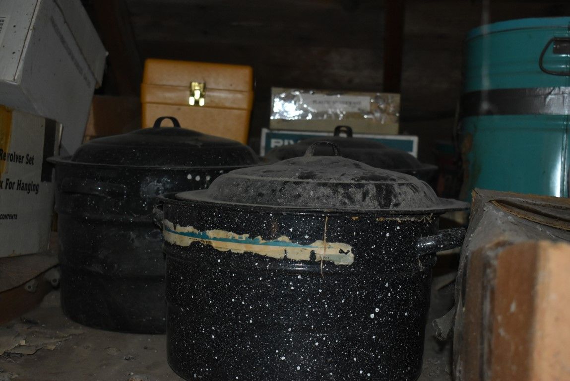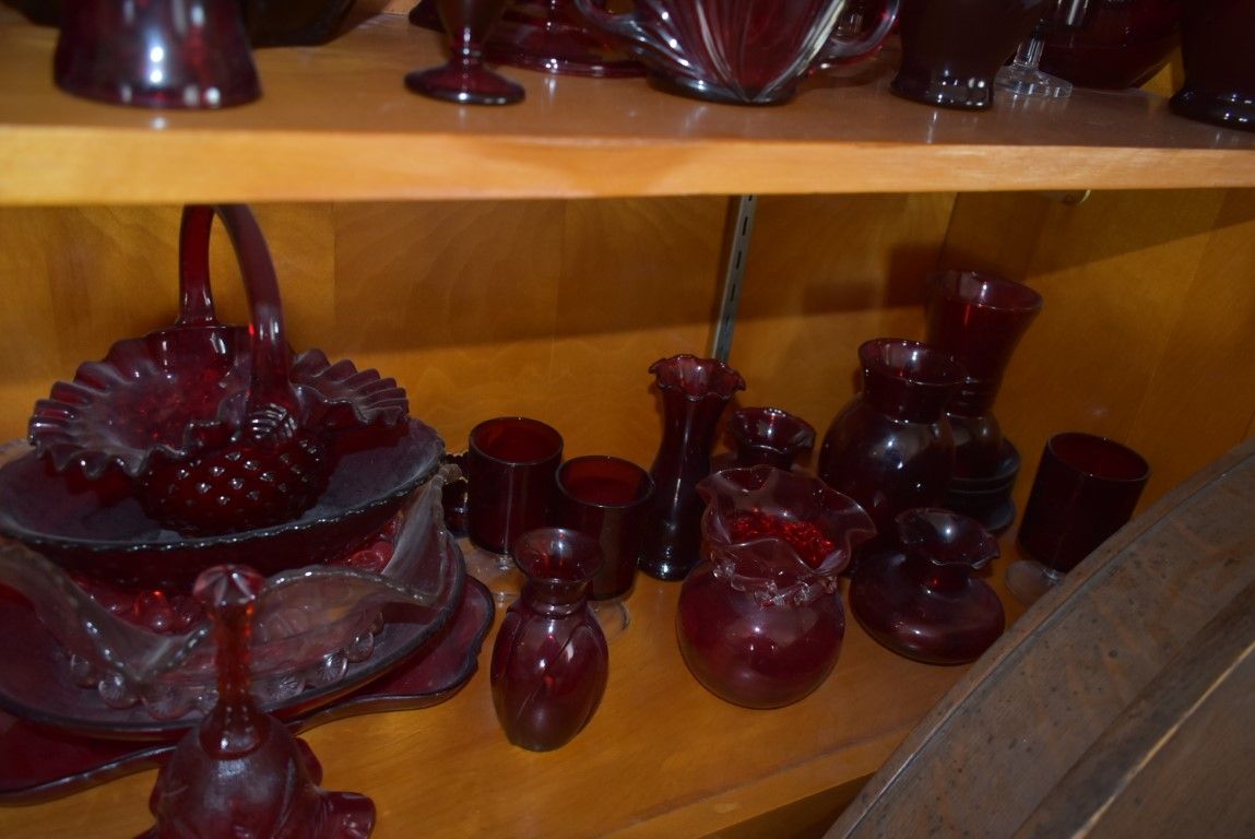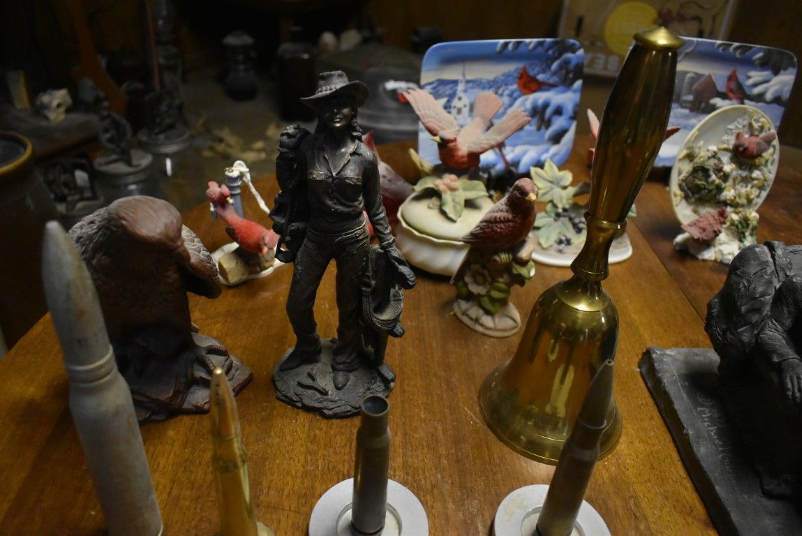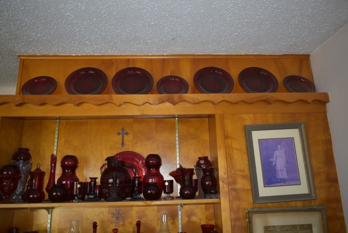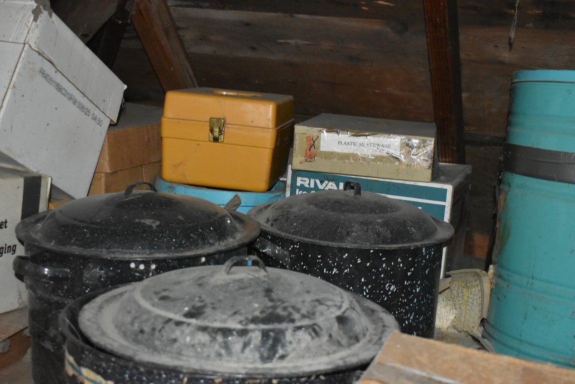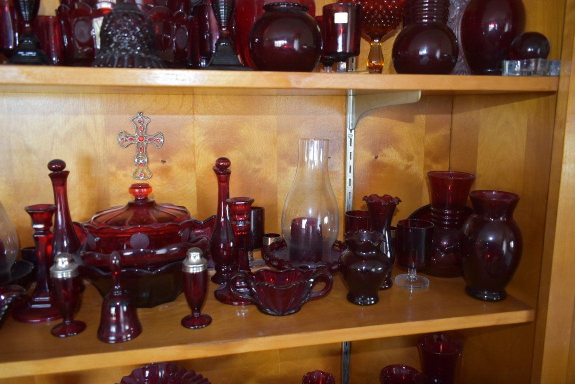 Glassware-Household-Misc: USA Vase, lots of Frankoma glassware comma, Arner’s pitcher and wash basin, 7 Avon Fostoria George Washington cobalt blue goblets, blue cobalt glass measuring pitcher, 2 vintage blue cobalt glass violin bottles, several other cobalt blue glass items, Antique Rayo oil lamp little plated brass, Ruby red glass Fenton collection, Lots of Wall Hangings/decorations, Several hen candy dishes, several mini hen candy dishes, glass rooster, the glass butter dish, vintage Murano art glass vases, 10+ Beam whiskey decanters, Gold 15” Elvis decanter, Edwin Knowles China pitcher and bowl set, large collection of Cardinal birds, 13 albums of gold replicas of stamps (5 are Golden Replicas of US stamps), Tapestry Wall picture, Wall mounted kerosene lamp, hanging elephants wall chime, , Ansonia gingerbread parlor clock 22T x 14w, Wall mirror 52 by 20, old Last Supper picture, Ornate wall mirror 17Wx33T, 45 inch round table needs repair, Large wood framed mirror 45x36, Gold framed wall mirror with shelves 27x23x5, ENC Comet laser range finder, Two Clay County heritage books 1990, history of Cass County Nebraska book 1989, The book of Cowboys, The book of Indians, two orange/black Clay Center high school yearbooks 1914 and 1922, Tiger yearbook 1942, large 50 years of movie posters book 1911 to 1955, wooden magazine racks, 1989 art mark cast iron doorstop, miscellaneous cookbooks, clear glass cat candy dish, Seth Thomas wind up wall clock, brass standing floor lamp, large wall mirror with three panels 54 long by 12 1/2, Lefton cardinal wall decoration, child's tea set, 9 thimble sets in shadow boxes, 2 Thoven Music boxes made in Switzerland, Warlock metal door stop, set of Louis L’Amour hardback books (120), Puzzles, Christmas Books, Vintage come brush mirror set, double globe hurricane lamp pink rose, gold framed mirror, shark vacuum sweeper, cast cross w/candle holder, Lots of misc costume jewelry, RR lantern, Harvest Storm combine picture, Lots of Christmas decorations, porcelain dolls, several pedestal fans, Cast 26 inch pump Jack, anodized aluminum teapot, ninja pressure cooker, Keurig coffee Brewer, lots of stoneware dishes, lots of cooking utensils, set of USA bowls, Set of four cracker barrel stoneware with cardinal design, rival crock pot, malt blender, Over 40 Nutcrackers, Lots of pictures, Lots of bedding and quilts, 50” flat screen TV, Turkey call hint annual governors annual one shot Turkey hunt April 13 1996, victory key lock safe, round wood table 4 foot diameter 21 inches tall, square dinner table with round corners 42 by 42, doing pool lots of collectible plates, Kriss Kross stropper and razor device, Dozens of collectible glass eggs, 50th anniversary D-Day zippo lighter, white clay tobacco pipe, marble swan set, new Wentzel Dutch oven, new cast iron skillets, cast iron cookware wood box, Wood ammo box, Wood upright storage cabinet 68x19x13, Shadow box w/Indian figurines, set of honing rods, Old sharpening stones, Mahjong Set in case, 3 JD steins, Sylvester cookie jar, Chess Game table 28x28, 55” flat screen TV, 4 dr metal file cabinet, 2 Dr. wood file cabinet, several kerosene lanterns, electric stove heater, antique table, round end table, diameter, can of canes and walking sticks, Brass spit tunes, raising the flag at Iwo jima sculpture, , China glassware, set of nun chucks, Bucket of lead weights, Variety of wood crates, Wood clamps, Misc fishing poles, They were antique metal ammo boxes, metal pink high chair, animal leg traps, Misc shoe repair items, 8’ stock tank, water hoses, Pile a rough cut lumber approximately 30 feet long, miscellaneous yard art, six or more large canners, yard sundial freestanding, Various outdoor flower pots, a pair of brass goblets, carnival glass dishes, mining boxes say 40 fuse on side, old trunks, cheese boxes, Many more items to unbox.