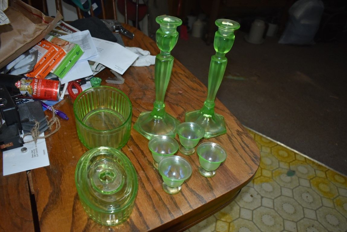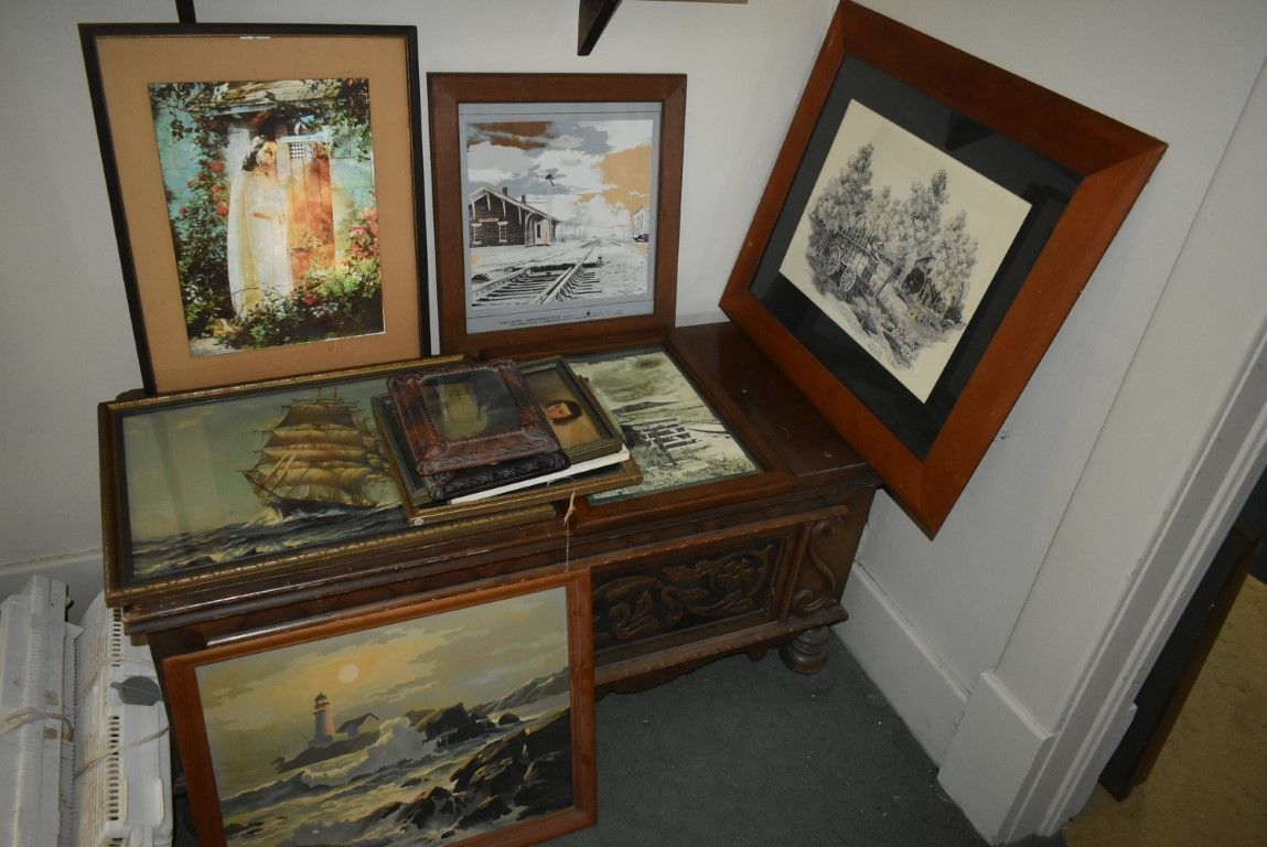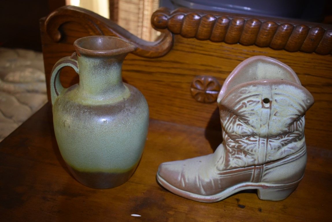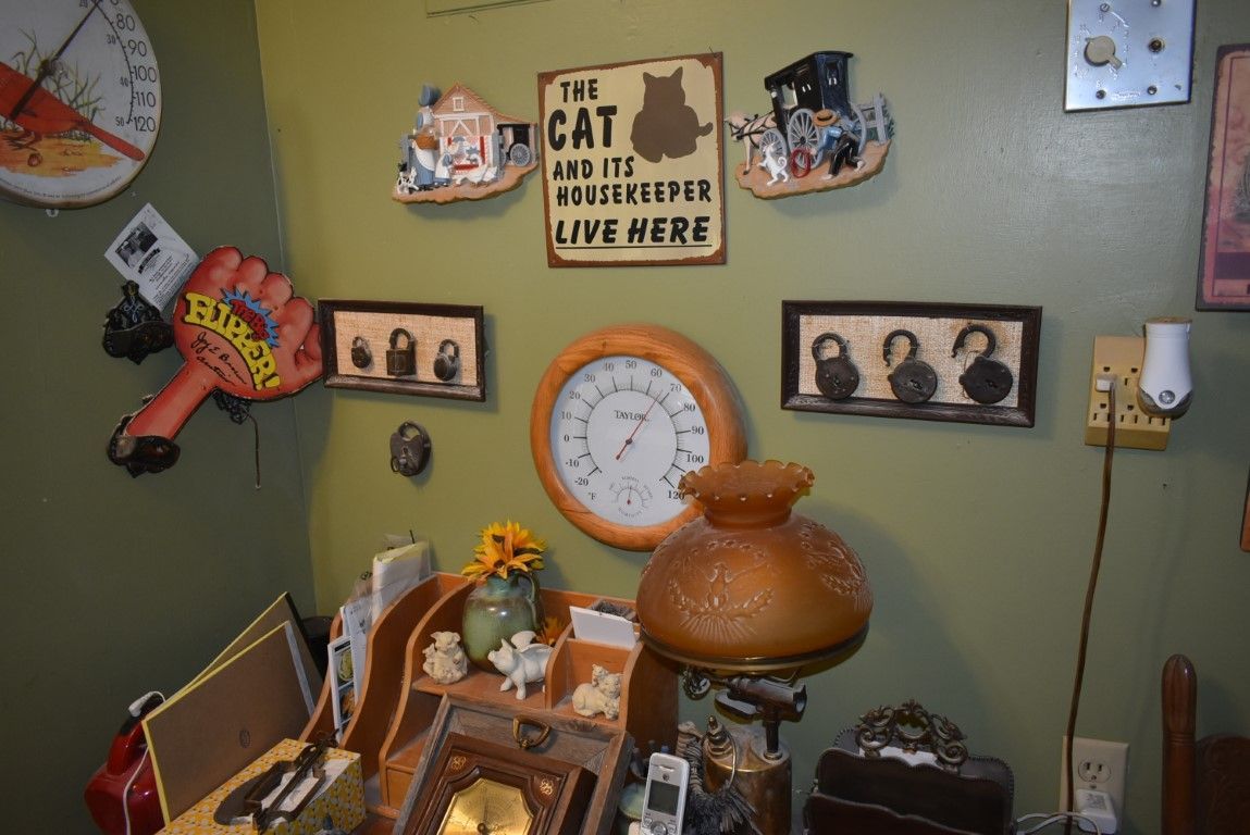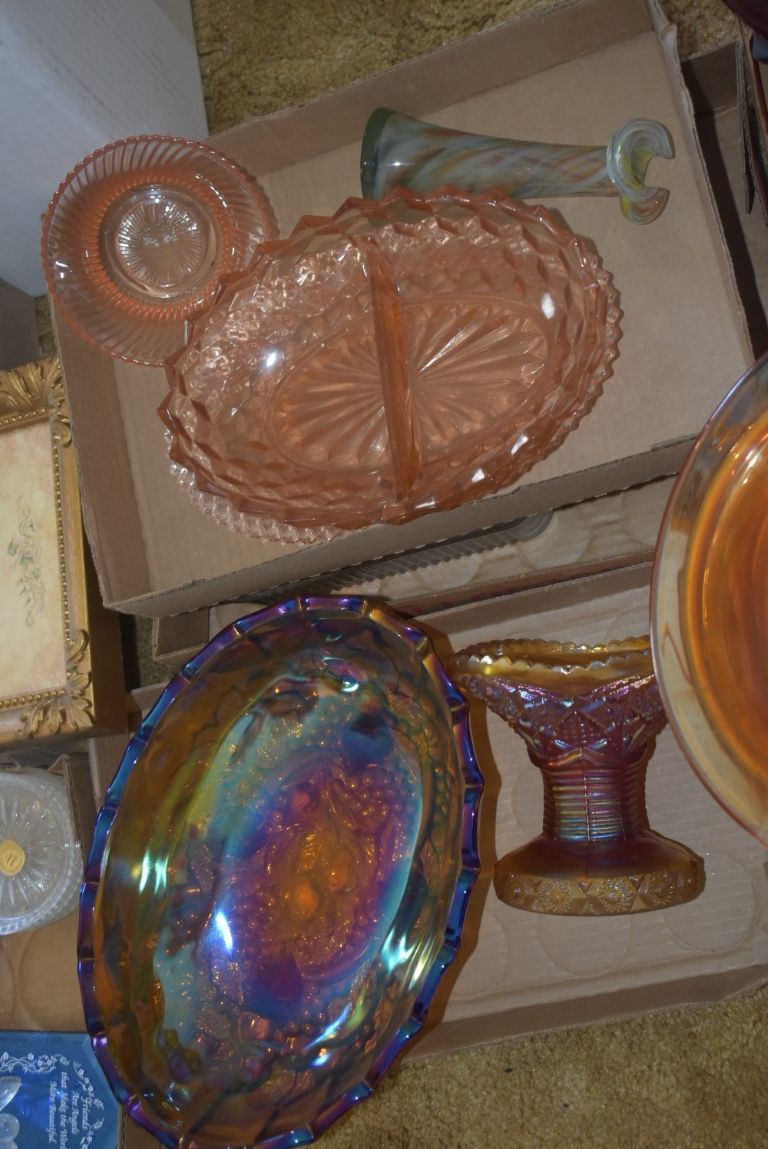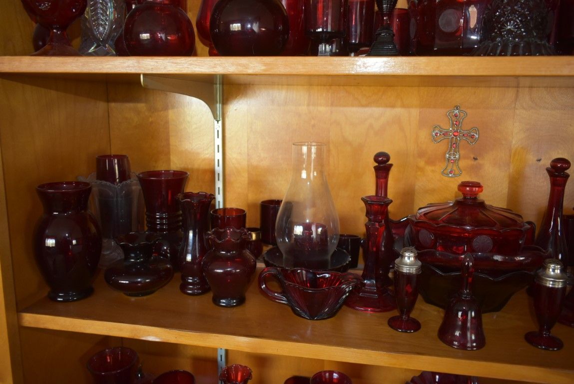 Glassware-Household-Misc: USA Vase, lots of Frankoma glassware comma, Arner’s pitcher and wash basin, 7 Avon Fostoria George Washington cobalt blue goblets, blue cobalt glass measuring pitcher, 2 vintage blue cobalt glass violin bottles, several other cobalt blue glass items, Antique Rayo oil lamp little plated brass, Ruby red glass Fenton collection, Lots of Wall Hangings/decorations, Several hen candy dishes, several mini hen candy dishes, glass rooster, the glass butter dish, vintage Murano art glass vases, 10+ Beam whiskey decanters, Gold 15” Elvis decanter, Edwin Knowles China pitcher and bowl set, large collection of Cardinal birds, 13 albums of gold replicas of stamps (5 are Golden Replicas of US stamps), Tapestry Wall picture, Wall mounted kerosene lamp, hanging elephants wall chime, , Ansonia gingerbread parlor clock 22T x 14w, Wall mirror 52 by 20, old Last Supper picture, Ornate wall mirror 17Wx33T, 45 inch round table needs repair, Large wood framed mirror 45x36, Gold framed wall mirror with shelves 27x23x5, ENC Comet laser range finder, Two Clay County heritage books 1990, history of Cass County Nebraska book 1989, The book of Cowboys, The book of Indians, two orange/black Clay Center high school yearbooks 1914 and 1922, Tiger yearbook 1942, large 50 years of movie posters book 1911 to 1955, wooden magazine racks, 1989 art mark cast iron doorstop, miscellaneous cookbooks, clear glass cat candy dish, Seth Thomas wind up wall clock, brass standing floor lamp, large wall mirror with three panels 54 long by 12 1/2, Lefton cardinal wall decoration, child's tea set, 9 thimble sets in shadow boxes, 2 Thoven Music boxes made in Switzerland, Warlock metal door stop, set of Louis L’Amour hardback books (120), Puzzles, Christmas Books, Vintage come brush mirror set, double globe hurricane lamp pink rose, gold framed mirror, shark vacuum sweeper, cast cross w/candle holder, Lots of misc costume jewelry, RR lantern, Harvest Storm combine picture, Lots of Christmas decorations, porcelain dolls, several pedestal fans, Cast 26 inch pump Jack, anodized aluminum teapot, ninja pressure cooker, Keurig coffee Brewer, lots of stoneware dishes, lots of cooking utensils, set of USA bowls, Set of four cracker barrel stoneware with cardinal design, rival crock pot, malt blender, Over 40 Nutcrackers, Lots of pictures, Lots of bedding and quilts, 50” flat screen TV, Turkey call hint annual governors annual one shot Turkey hunt April 13 1996, victory key lock safe, round wood table 4 foot diameter 21 inches tall, square dinner table with round corners 42 by 42, doing pool lots of collectible plates, Kriss Kross stropper and razor device, Dozens of collectible glass eggs, 50th anniversary D-Day zippo lighter, white clay tobacco pipe, marble swan set, new Wentzel Dutch oven, new cast iron skillets, cast iron cookware wood box, Wood ammo box, Wood upright storage cabinet 68x19x13, Shadow box w/Indian figurines, set of honing rods, Old sharpening stones, Mahjong Set in case, 3 JD steins, Sylvester cookie jar, Chess Game table 28x28, 55” flat screen TV, 4 dr metal file cabinet, 2 Dr. wood file cabinet, several kerosene lanterns, electric stove heater, antique table, round end table, diameter, can of canes and walking sticks, Brass spit tunes, raising the flag at Iwo jima sculpture, , China glassware, set of nun chucks, Bucket of lead weights, Variety of wood crates, Wood clamps, Misc fishing poles, They were antique metal ammo boxes, metal pink high chair, animal leg traps, Misc shoe repair items, 8’ stock tank, water hoses, Pile a rough cut lumber approximately 30 feet long, miscellaneous yard art, six or more large canners, yard sundial freestanding, Various outdoor flower pots, a pair of brass goblets, carnival glass dishes, mining boxes say 40 fuse on side, old trunks, cheese boxes, Many more items to unbox.