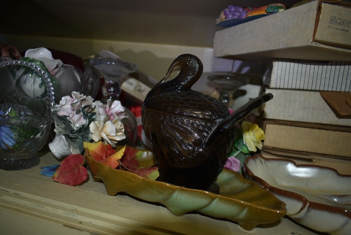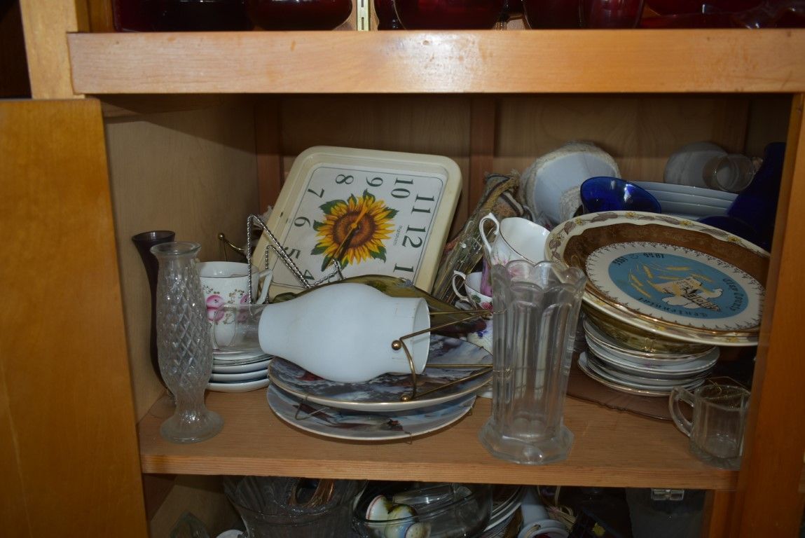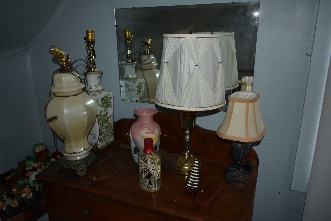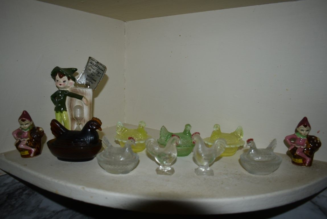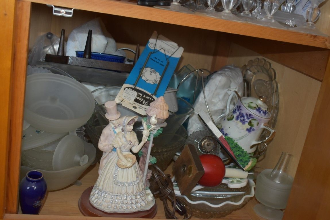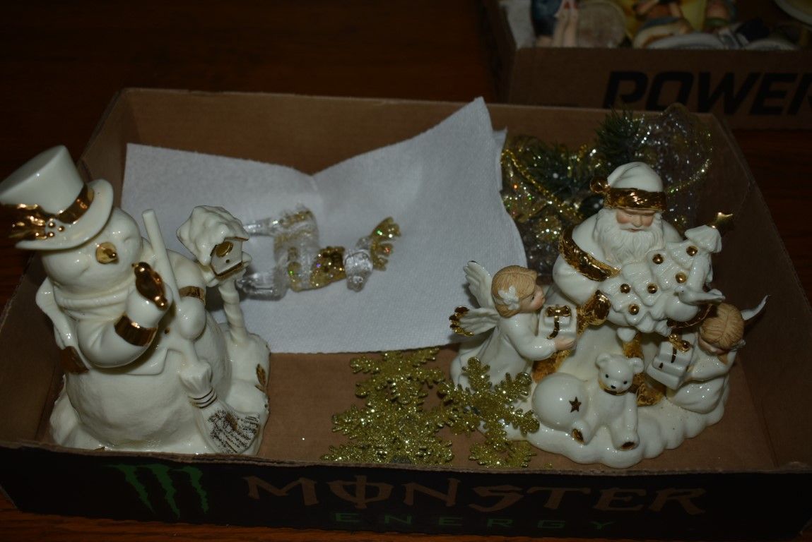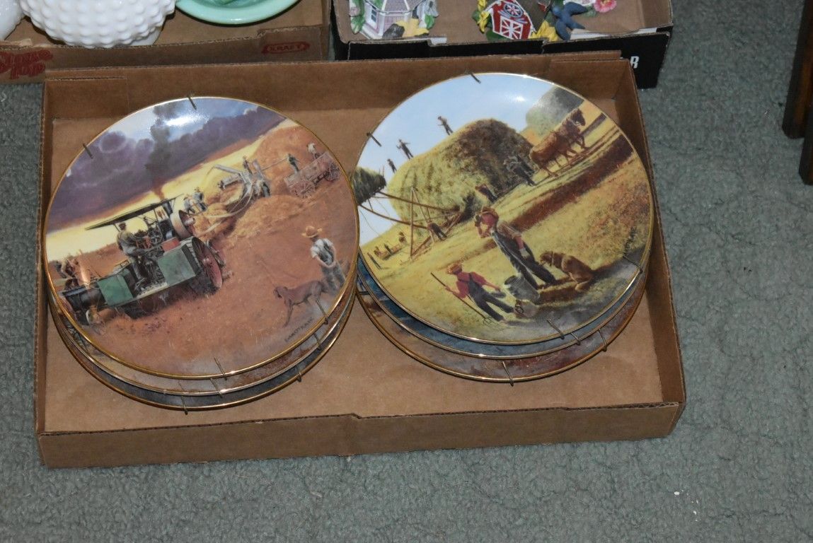 Glassware-Household-Misc: USA Vase, lots of Frankoma glassware comma, Arner’s pitcher and wash basin, 7 Avon Fostoria George Washington cobalt blue goblets, blue cobalt glass measuring pitcher, 2 vintage blue cobalt glass violin bottles, several other cobalt blue glass items, Antique Rayo oil lamp little plated brass, Ruby red glass Fenton collection, Lots of Wall Hangings/decorations, Several hen candy dishes, several mini hen candy dishes, glass rooster, the glass butter dish, vintage Murano art glass vases, 10+ Beam whiskey decanters, Gold 15” Elvis decanter, Edwin Knowles China pitcher and bowl set, large collection of Cardinal birds, 13 albums of gold replicas of stamps (5 are Golden Replicas of US stamps), Tapestry Wall picture, Wall mounted kerosene lamp, hanging elephants wall chime, , Ansonia gingerbread parlor clock 22T x 14w, Wall mirror 52 by 20, old Last Supper picture, Ornate wall mirror 17Wx33T, 45 inch round table needs repair, Large wood framed mirror 45x36, Gold framed wall mirror with shelves 27x23x5, ENC Comet laser range finder, Two Clay County heritage books 1990, history of Cass County Nebraska book 1989, The book of Cowboys, The book of Indians, two orange/black Clay Center high school yearbooks 1914 and 1922, Tiger yearbook 1942, large 50 years of movie posters book 1911 to 1955, wooden magazine racks, 1989 art mark cast iron doorstop, miscellaneous cookbooks, clear glass cat candy dish, Seth Thomas wind up wall clock, brass standing floor lamp, large wall mirror with three panels 54 long by 12 1/2, Lefton cardinal wall decoration, child's tea set, 9 thimble sets in shadow boxes, 2 Thoven Music boxes made in Switzerland, Warlock metal door stop, set of Louis L’Amour hardback books (120), Puzzles, Christmas Books, Vintage come brush mirror set, double globe hurricane lamp pink rose, gold framed mirror, shark vacuum sweeper, cast cross w/candle holder, Lots of misc costume jewelry, RR lantern, Harvest Storm combine picture, Lots of Christmas decorations, porcelain dolls, several pedestal fans, Cast 26 inch pump Jack, anodized aluminum teapot, ninja pressure cooker, Keurig coffee Brewer, lots of stoneware dishes, lots of cooking utensils, set of USA bowls, Set of four cracker barrel stoneware with cardinal design, rival crock pot, malt blender, Over 40 Nutcrackers, Lots of pictures, Lots of bedding and quilts, 50” flat screen TV, Turkey call hint annual governors annual one shot Turkey hunt April 13 1996, victory key lock safe, round wood table 4 foot diameter 21 inches tall, square dinner table with round corners 42 by 42, doing pool lots of collectible plates, Kriss Kross stropper and razor device, Dozens of collectible glass eggs, 50th anniversary D-Day zippo lighter, white clay tobacco pipe, marble swan set, new Wentzel Dutch oven, new cast iron skillets, cast iron cookware wood box, Wood ammo box, Wood upright storage cabinet 68x19x13, Shadow box w/Indian figurines, set of honing rods, Old sharpening stones, Mahjong Set in case, 3 JD steins, Sylvester cookie jar, Chess Game table 28x28, 55” flat screen TV, 4 dr metal file cabinet, 2 Dr. wood file cabinet, several kerosene lanterns, electric stove heater, antique table, round end table, diameter, can of canes and walking sticks, Brass spit tunes, raising the flag at Iwo jima sculpture, , China glassware, set of nun chucks, Bucket of lead weights, Variety of wood crates, Wood clamps, Misc fishing poles, They were antique metal ammo boxes, metal pink high chair, animal leg traps, Misc shoe repair items, 8’ stock tank, water hoses, Pile a rough cut lumber approximately 30 feet long, miscellaneous yard art, six or more large canners, yard sundial freestanding, Various outdoor flower pots, a pair of brass goblets, carnival glass dishes, mining boxes say 40 fuse on side, old trunks, cheese boxes, Many more items to unbox.