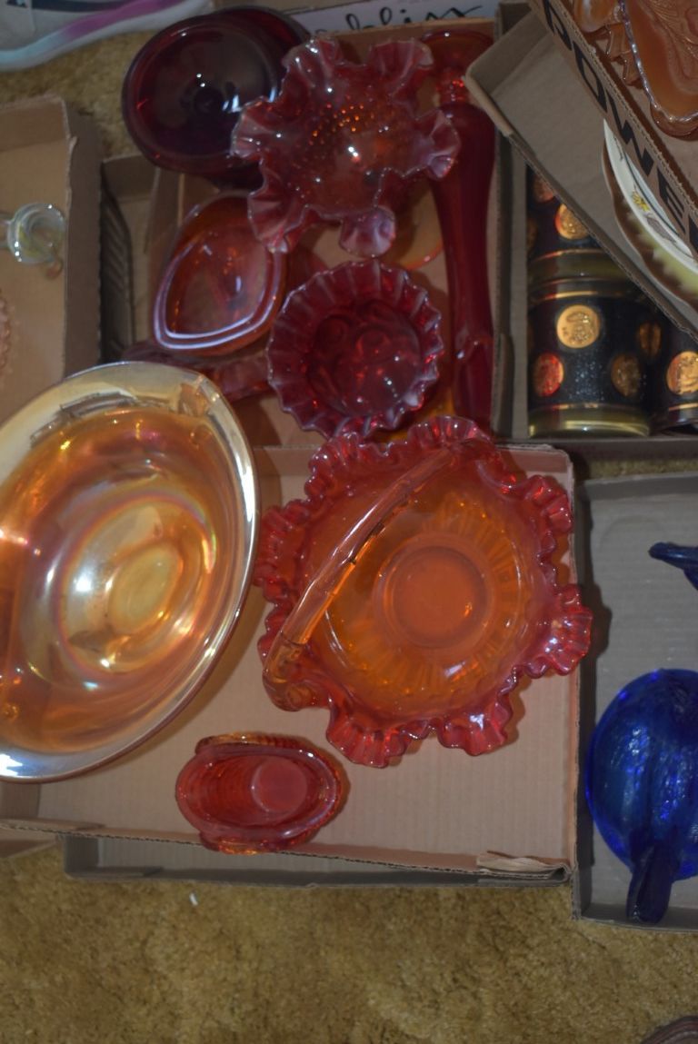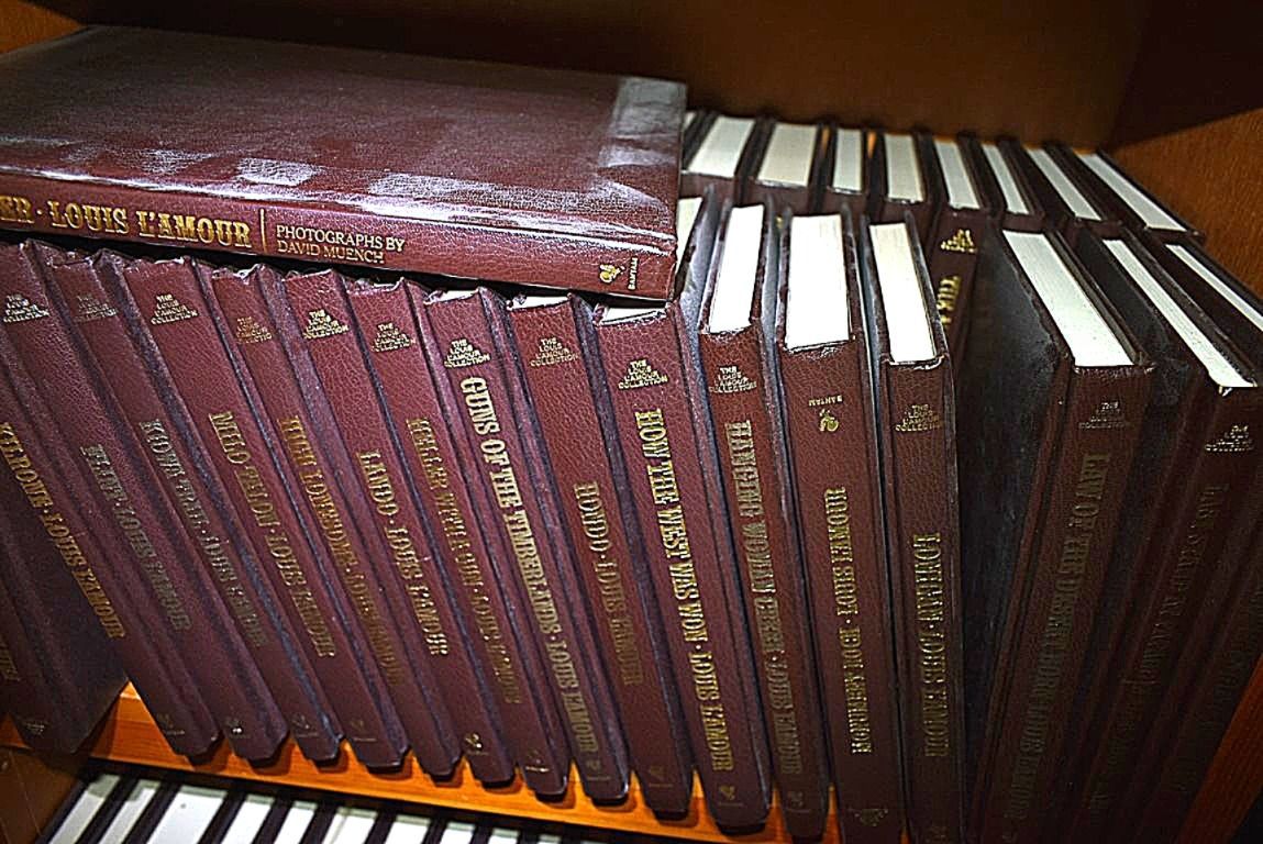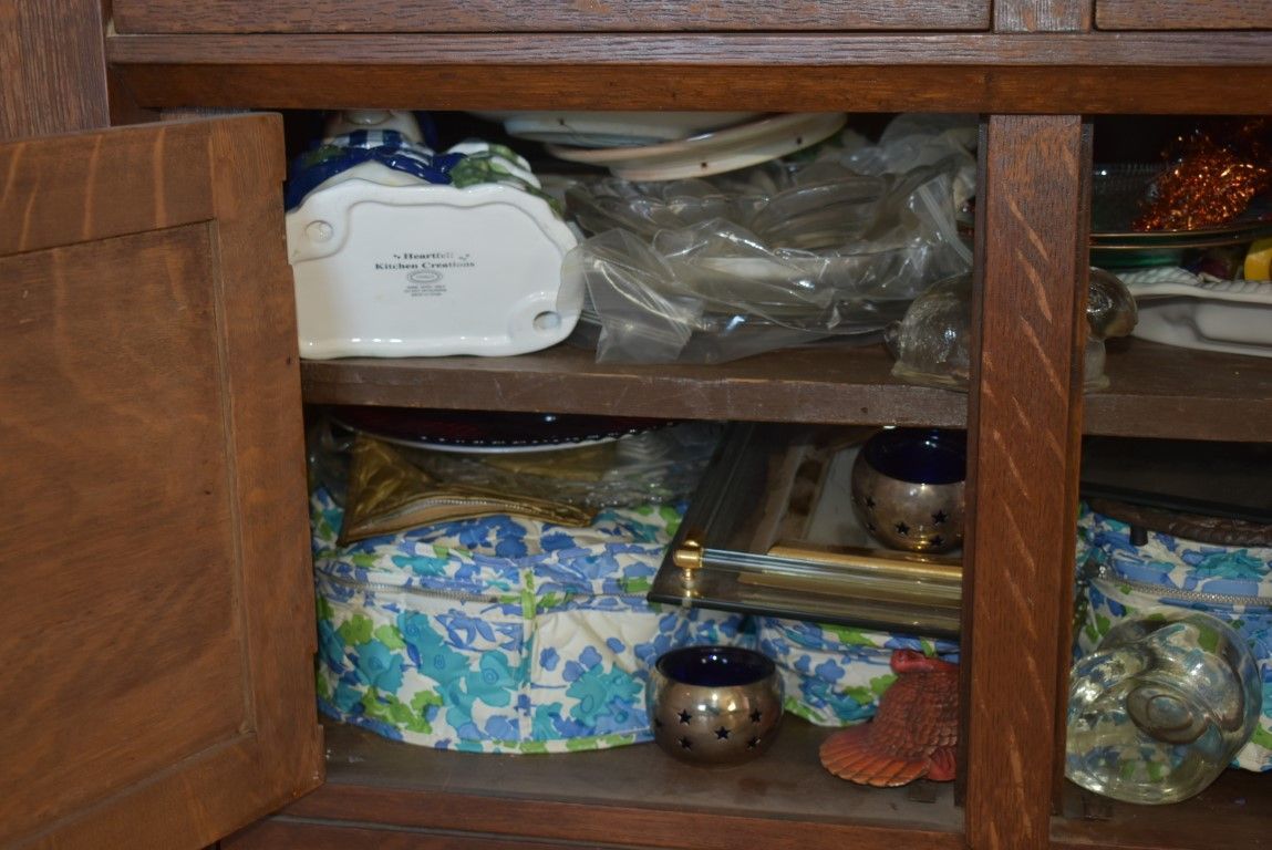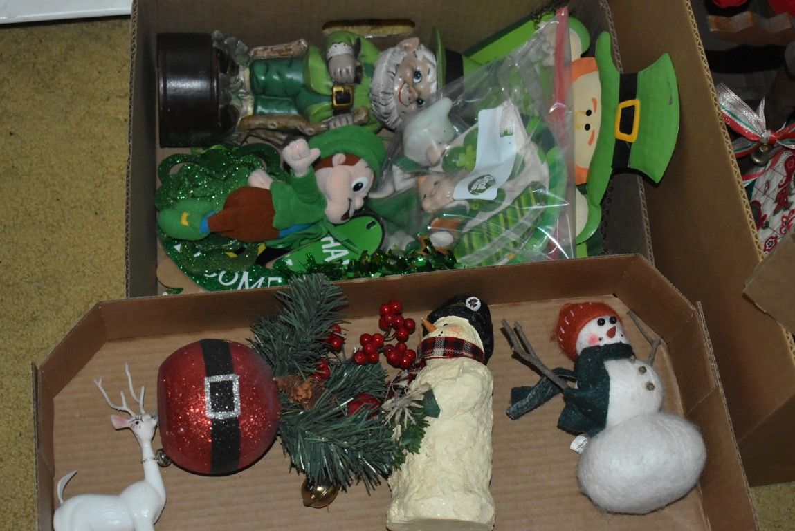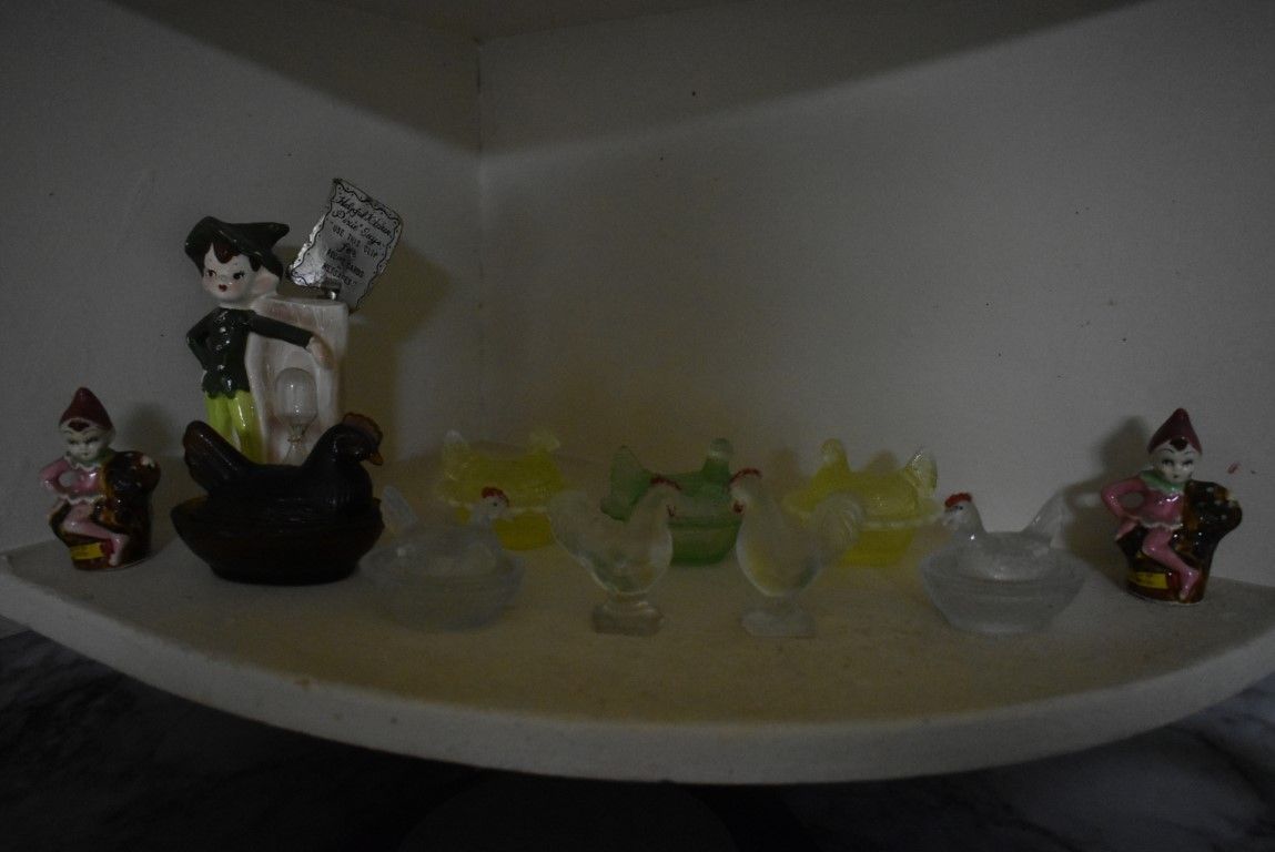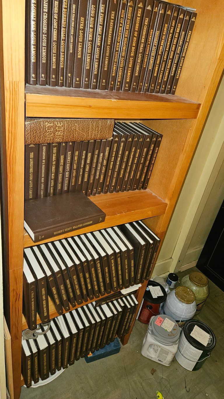 Glassware-Household-Misc: USA Vase, lots of Frankoma glassware comma, Arner’s pitcher and wash basin, 7 Avon Fostoria George Washington cobalt blue goblets, blue cobalt glass measuring pitcher, 2 vintage blue cobalt glass violin bottles, several other cobalt blue glass items, Antique Rayo oil lamp little plated brass, Ruby red glass Fenton collection, Lots of Wall Hangings/decorations, Several hen candy dishes, several mini hen candy dishes, glass rooster, the glass butter dish, vintage Murano art glass vases, 10+ Beam whiskey decanters, Gold 15” Elvis decanter, Edwin Knowles China pitcher and bowl set, large collection of Cardinal birds, 13 albums of gold replicas of stamps (5 are Golden Replicas of US stamps), Tapestry Wall picture, Wall mounted kerosene lamp, hanging elephants wall chime, , Ansonia gingerbread parlor clock 22T x 14w, Wall mirror 52 by 20, old Last Supper picture, Ornate wall mirror 17Wx33T, 45 inch round table needs repair, Large wood framed mirror 45x36, Gold framed wall mirror with shelves 27x23x5, ENC Comet laser range finder, Two Clay County heritage books 1990, history of Cass County Nebraska book 1989, The book of Cowboys, The book of Indians, two orange/black Clay Center high school yearbooks 1914 and 1922, Tiger yearbook 1942, large 50 years of movie posters book 1911 to 1955, wooden magazine racks, 1989 art mark cast iron doorstop, miscellaneous cookbooks, clear glass cat candy dish, Seth Thomas wind up wall clock, brass standing floor lamp, large wall mirror with three panels 54 long by 12 1/2, Lefton cardinal wall decoration, child's tea set, 9 thimble sets in shadow boxes, 2 Thoven Music boxes made in Switzerland, Warlock metal door stop, set of Louis L’Amour hardback books (120), Puzzles, Christmas Books, Vintage come brush mirror set, double globe hurricane lamp pink rose, gold framed mirror, shark vacuum sweeper, cast cross w/candle holder, Lots of misc costume jewelry, RR lantern, Harvest Storm combine picture, Lots of Christmas decorations, porcelain dolls, several pedestal fans, Cast 26 inch pump Jack, anodized aluminum teapot, ninja pressure cooker, Keurig coffee Brewer, lots of stoneware dishes, lots of cooking utensils, set of USA bowls, Set of four cracker barrel stoneware with cardinal design, rival crock pot, malt blender, Over 40 Nutcrackers, Lots of pictures, Lots of bedding and quilts, 50” flat screen TV, Turkey call hint annual governors annual one shot Turkey hunt April 13 1996, victory key lock safe, round wood table 4 foot diameter 21 inches tall, square dinner table with round corners 42 by 42, doing pool lots of collectible plates, Kriss Kross stropper and razor device, Dozens of collectible glass eggs, 50th anniversary D-Day zippo lighter, white clay tobacco pipe, marble swan set, new Wentzel Dutch oven, new cast iron skillets, cast iron cookware wood box, Wood ammo box, Wood upright storage cabinet 68x19x13, Shadow box w/Indian figurines, set of honing rods, Old sharpening stones, Mahjong Set in case, 3 JD steins, Sylvester cookie jar, Chess Game table 28x28, 55” flat screen TV, 4 dr metal file cabinet, 2 Dr. wood file cabinet, several kerosene lanterns, electric stove heater, antique table, round end table, diameter, can of canes and walking sticks, Brass spit tunes, raising the flag at Iwo jima sculpture, , China glassware, set of nun chucks, Bucket of lead weights, Variety of wood crates, Wood clamps, Misc fishing poles, They were antique metal ammo boxes, metal pink high chair, animal leg traps, Misc shoe repair items, 8’ stock tank, water hoses, Pile a rough cut lumber approximately 30 feet long, miscellaneous yard art, six or more large canners, yard sundial freestanding, Various outdoor flower pots, a pair of brass goblets, carnival glass dishes, mining boxes say 40 fuse on side, old trunks, cheese boxes, Many more items to unbox.