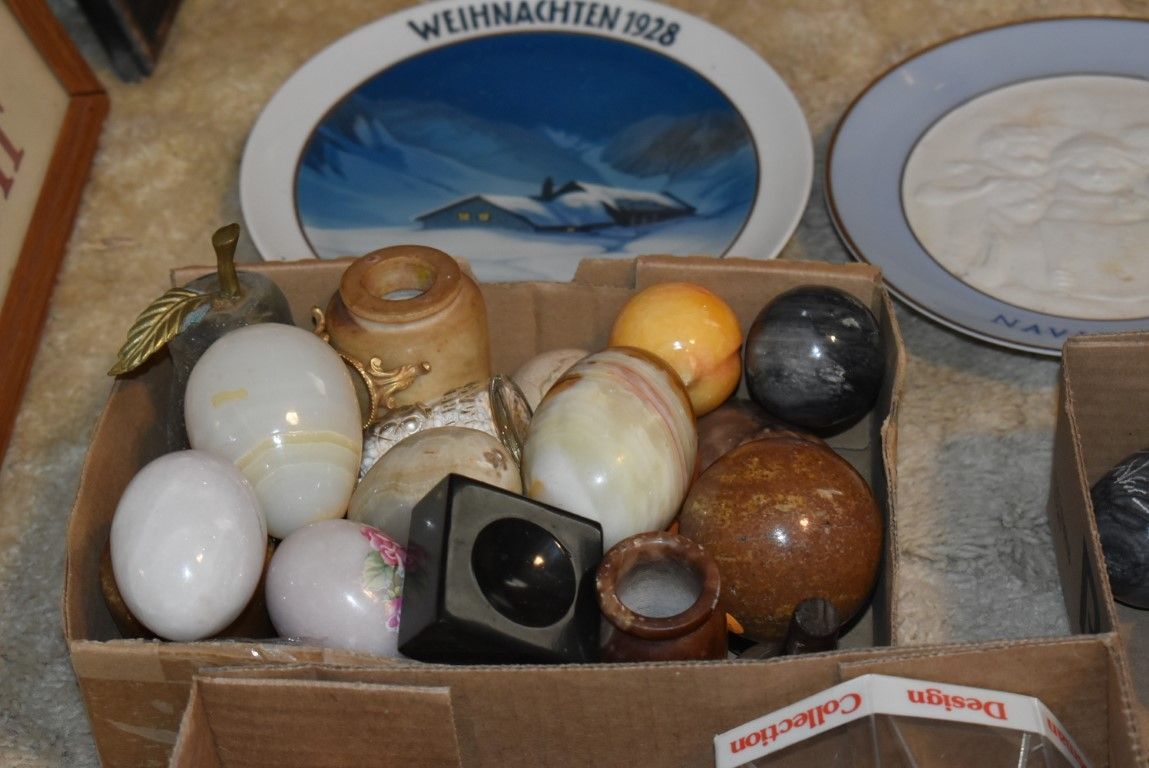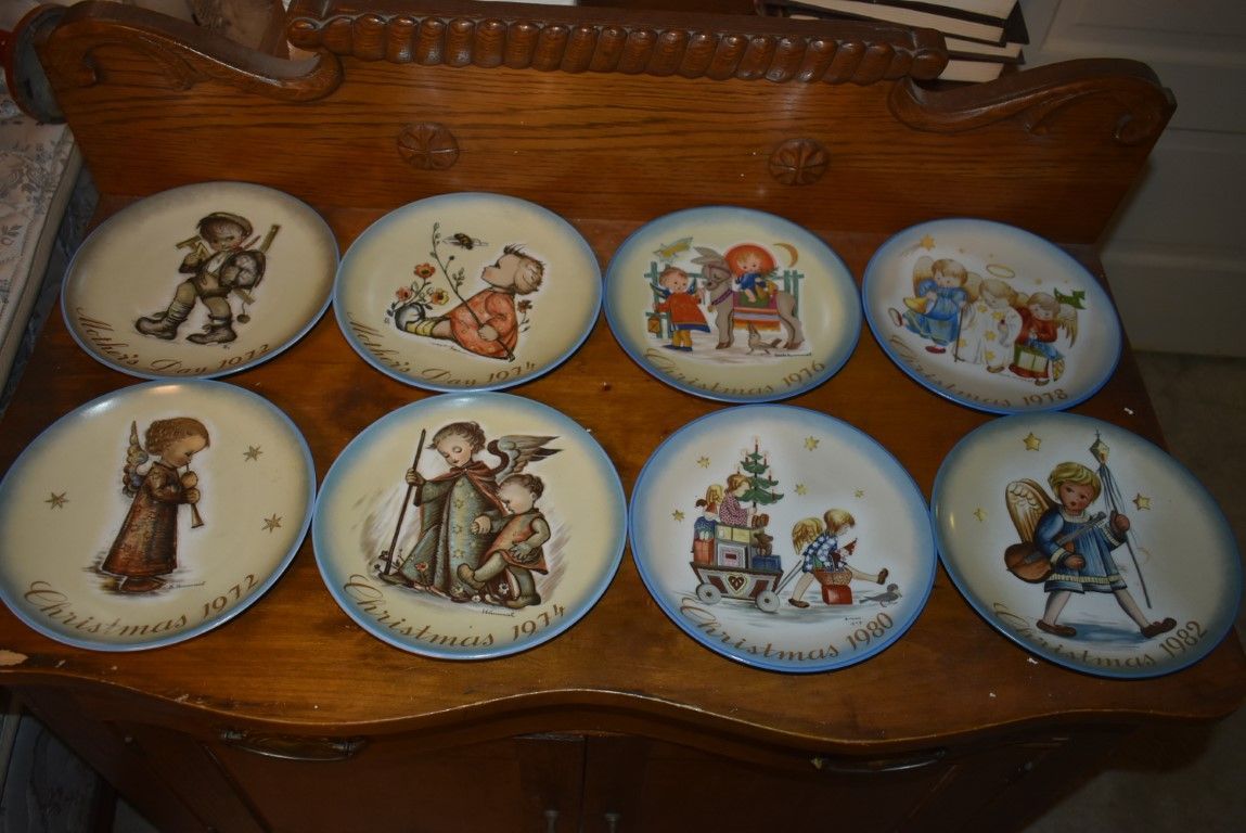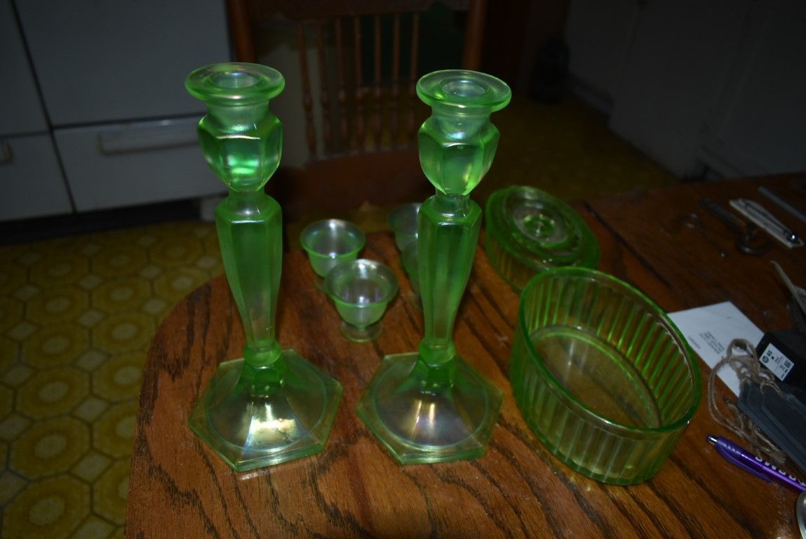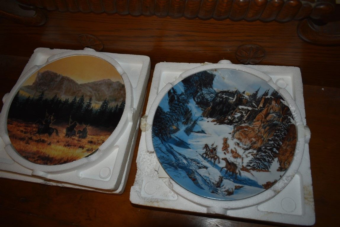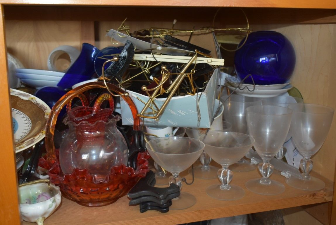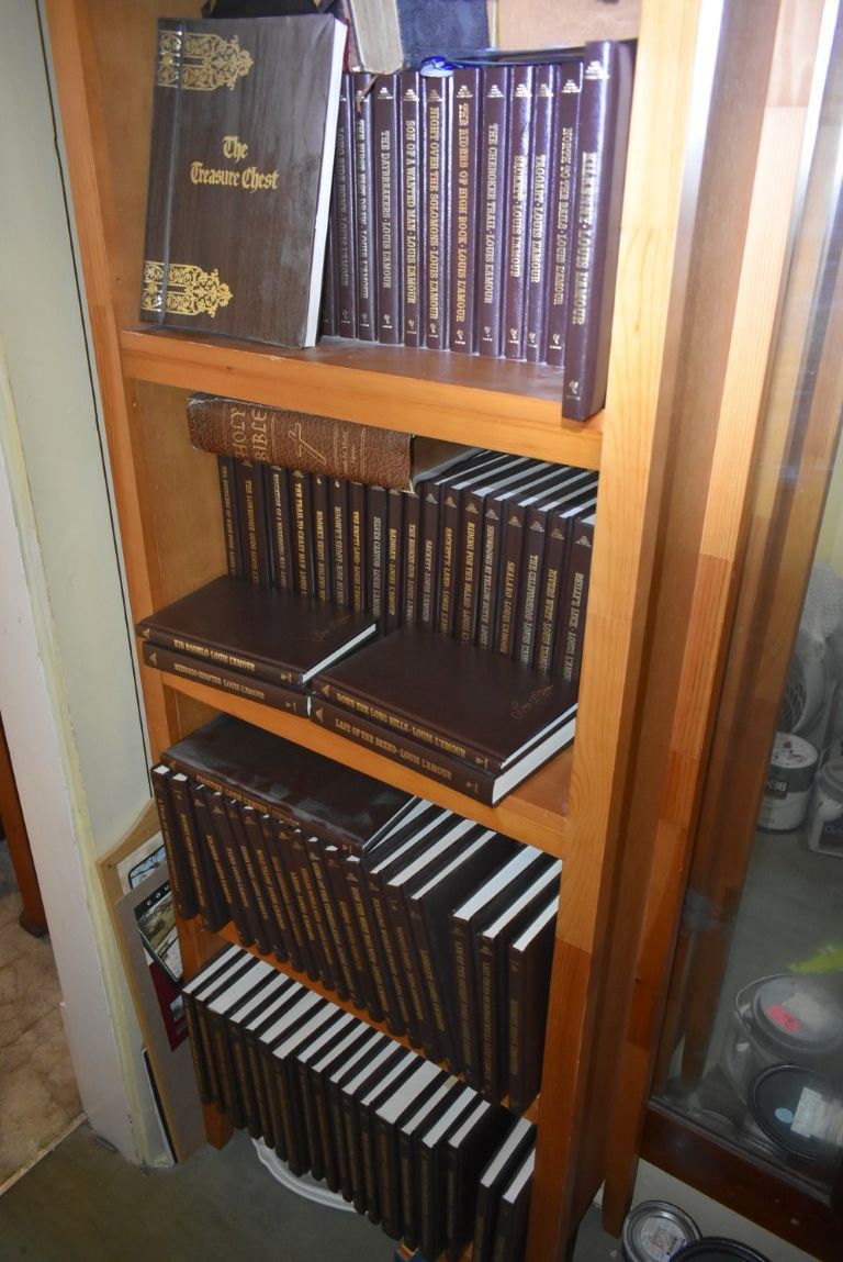 Glassware-Household-Misc: USA Vase, lots of Frankoma glassware comma, Arner’s pitcher and wash basin, 7 Avon Fostoria George Washington cobalt blue goblets, blue cobalt glass measuring pitcher, 2 vintage blue cobalt glass violin bottles, several other cobalt blue glass items, Antique Rayo oil lamp little plated brass, Ruby red glass Fenton collection, Lots of Wall Hangings/decorations, Several hen candy dishes, several mini hen candy dishes, glass rooster, the glass butter dish, vintage Murano art glass vases, 10+ Beam whiskey decanters, Gold 15” Elvis decanter, Edwin Knowles China pitcher and bowl set, large collection of Cardinal birds, 13 albums of gold replicas of stamps (5 are Golden Replicas of US stamps), Tapestry Wall picture, Wall mounted kerosene lamp, hanging elephants wall chime, , Ansonia gingerbread parlor clock 22T x 14w, Wall mirror 52 by 20, old Last Supper picture, Ornate wall mirror 17Wx33T, 45 inch round table needs repair, Large wood framed mirror 45x36, Gold framed wall mirror with shelves 27x23x5, ENC Comet laser range finder, Two Clay County heritage books 1990, history of Cass County Nebraska book 1989, The book of Cowboys, The book of Indians, two orange/black Clay Center high school yearbooks 1914 and 1922, Tiger yearbook 1942, large 50 years of movie posters book 1911 to 1955, wooden magazine racks, 1989 art mark cast iron doorstop, miscellaneous cookbooks, clear glass cat candy dish, Seth Thomas wind up wall clock, brass standing floor lamp, large wall mirror with three panels 54 long by 12 1/2, Lefton cardinal wall decoration, child's tea set, 9 thimble sets in shadow boxes, 2 Thoven Music boxes made in Switzerland, Warlock metal door stop, set of Louis L’Amour hardback books (120), Puzzles, Christmas Books, Vintage come brush mirror set, double globe hurricane lamp pink rose, gold framed mirror, shark vacuum sweeper, cast cross w/candle holder, Lots of misc costume jewelry, RR lantern, Harvest Storm combine picture, Lots of Christmas decorations, porcelain dolls, several pedestal fans, Cast 26 inch pump Jack, anodized aluminum teapot, ninja pressure cooker, Keurig coffee Brewer, lots of stoneware dishes, lots of cooking utensils, set of USA bowls, Set of four cracker barrel stoneware with cardinal design, rival crock pot, malt blender, Over 40 Nutcrackers, Lots of pictures, Lots of bedding and quilts, 50” flat screen TV, Turkey call hint annual governors annual one shot Turkey hunt April 13 1996, victory key lock safe, round wood table 4 foot diameter 21 inches tall, square dinner table with round corners 42 by 42, doing pool lots of collectible plates, Kriss Kross stropper and razor device, Dozens of collectible glass eggs, 50th anniversary D-Day zippo lighter, white clay tobacco pipe, marble swan set, new Wentzel Dutch oven, new cast iron skillets, cast iron cookware wood box, Wood ammo box, Wood upright storage cabinet 68x19x13, Shadow box w/Indian figurines, set of honing rods, Old sharpening stones, Mahjong Set in case, 3 JD steins, Sylvester cookie jar, Chess Game table 28x28, 55” flat screen TV, 4 dr metal file cabinet, 2 Dr. wood file cabinet, several kerosene lanterns, electric stove heater, antique table, round end table, diameter, can of canes and walking sticks, Brass spit tunes, raising the flag at Iwo jima sculpture, , China glassware, set of nun chucks, Bucket of lead weights, Variety of wood crates, Wood clamps, Misc fishing poles, They were antique metal ammo boxes, metal pink high chair, animal leg traps, Misc shoe repair items, 8’ stock tank, water hoses, Pile a rough cut lumber approximately 30 feet long, miscellaneous yard art, six or more large canners, yard sundial freestanding, Various outdoor flower pots, a pair of brass goblets, carnival glass dishes, mining boxes say 40 fuse on side, old trunks, cheese boxes, Many more items to unbox.