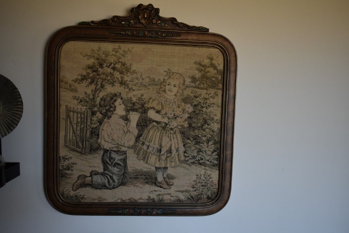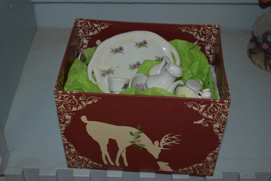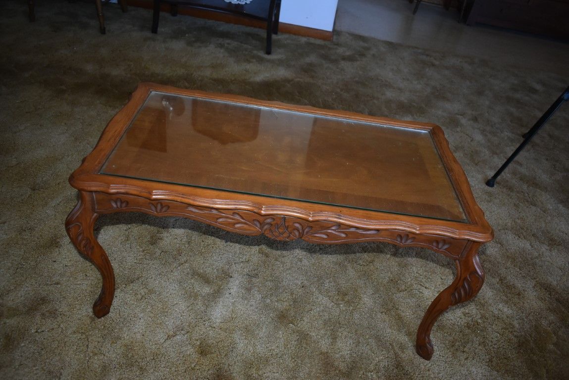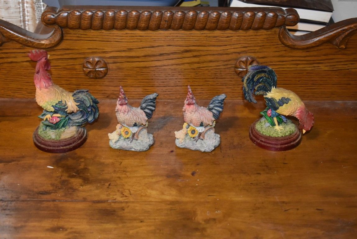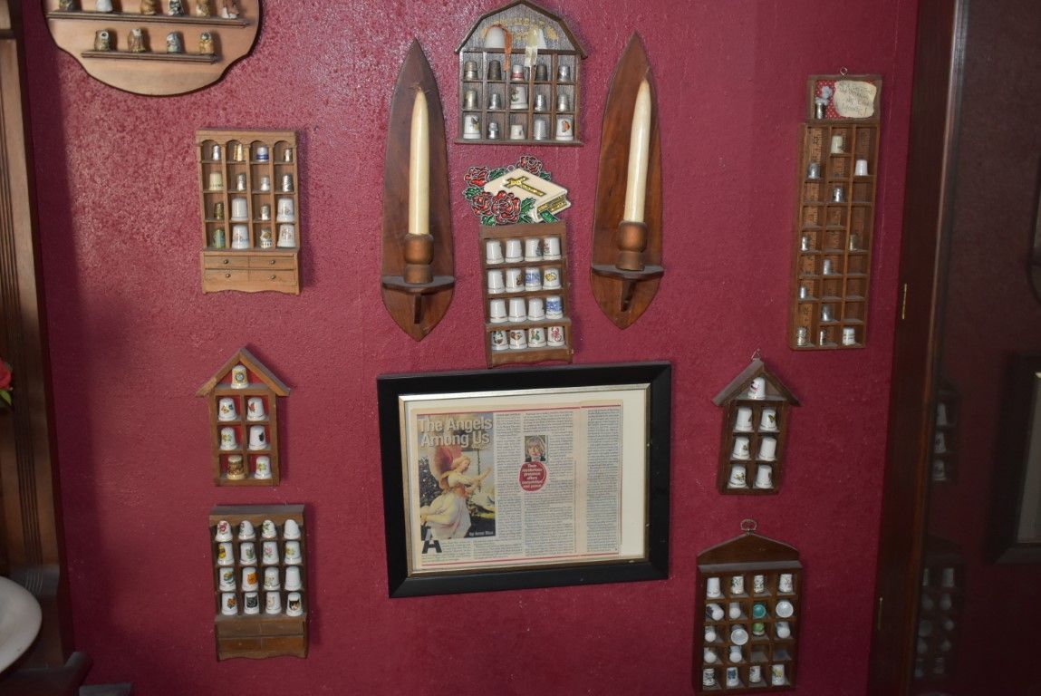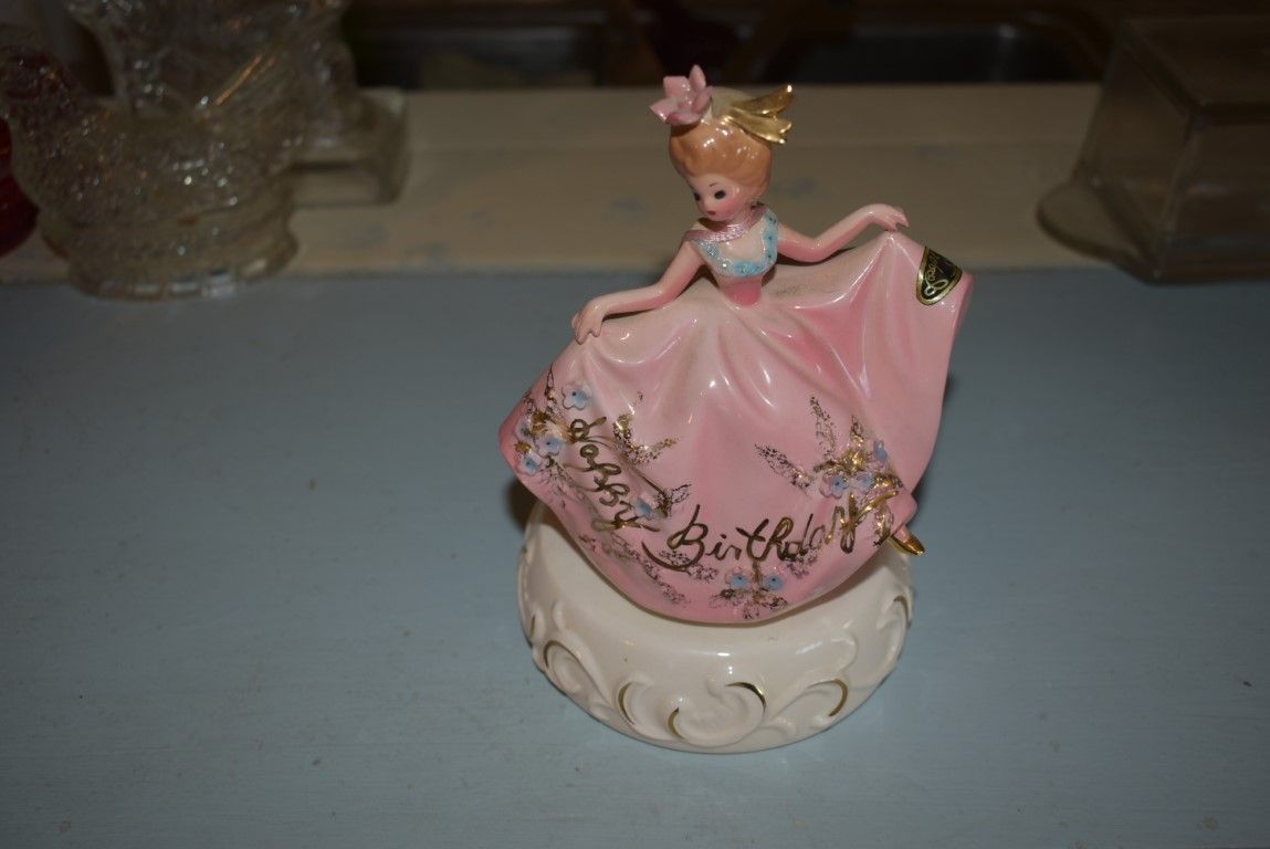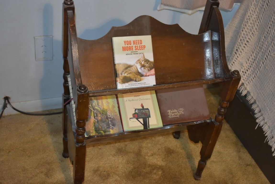 Antique Furniture: Victorian Velvet tufted back sofa, Sound of music Victorian chairs, , Antique Victorian Secretary, Antique Rocker, Foyer chairs, Vintage oak wood half round console table, pair of vintage tea tables with pedestal base, wood piano stool with claw and ball feet, antique purple platform rocker with springs, Floral upholstered Victorian style parlor chair, wood parlor table with bottom shelf, vintage 2 tier mahogany dumb waiter table with scalloped edge and tripod base, Antique rocker with Wicker seat, Two dr wood lamp stand vintage with Cabriole leap, Victorian walnut wash stand, 2 -Wood wash stand, three drawer vintage dresser, Vintage style hutch cabinet, Antique 4 dr dresser, Antique possum belly bakers cabinet, Antique buffet 60x23x30, Brass claw foot piano stool, would piano stool swivel with brass feet, Piano stool with cushion, Victorian oak side table with brass feet and glass ball feet, Antique dresser with mirror, antique wardrobe closet 78 x 41 x 14 5 shelves and two drawers, Four drawer dresser with swivel mirror, doorknob birdhouse, antique queen size bed, antique lawyers cabinet 2 shelves w/glass pull downs, Old wood trunk with two trays and hex key lock,