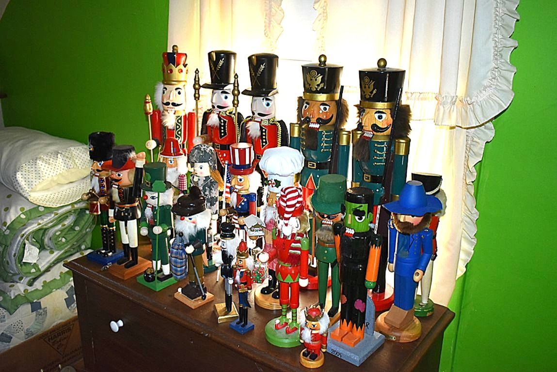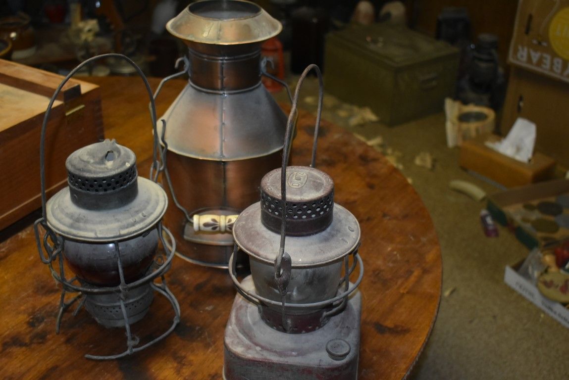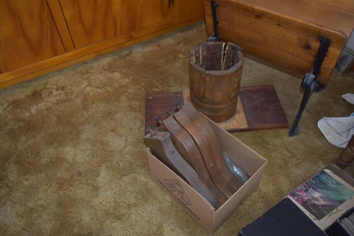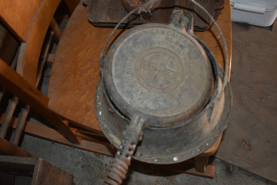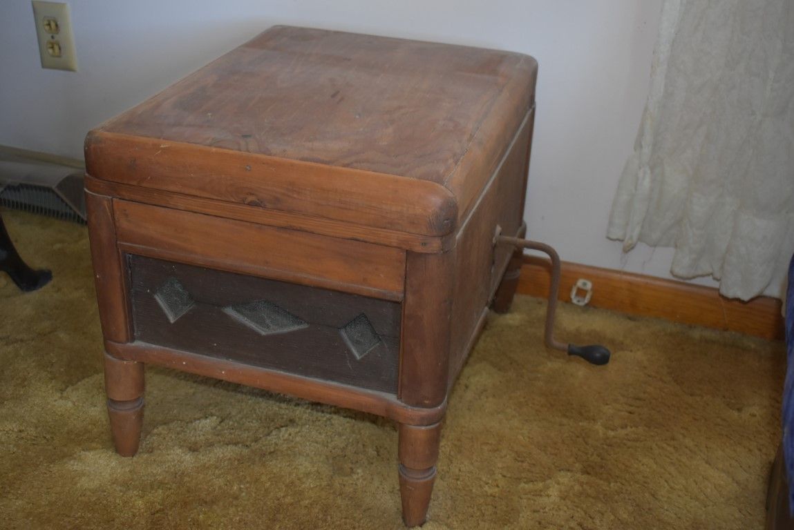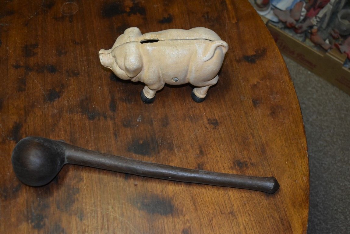 Vintage & antique: Ford pedal tractor commander 5000, old style antique wooden barrel butter churn, 2-Vintage Convex glass oval framed pics of WW1 era pictures of soldiers, Several Gone with The Wind style parlor lamps, 9 plus oil lamps (3 cobalt blue glass Aladdin Lincoln drape oil lamps), vintage Holms stereoscope, Lots of stereoscope cards, Black box w/Vintage Keystone Monarch stereoscope and cards, 2 vintage wood boxes with brass hinges and handles (1- 11 3/4x7 1/4x7 ¾ & 1-15 3/4x 9 1/2x 9 ½), antique mantle clock Adamantine Black Gilbert w/Roman columns, gone with the wind hurricane lamp (white milk glass with scalloped edge and applied bronze floral details), Vintage hurricane kerosene lamp, Marshall Ferdinand FOCH supreme allied picture 1918, General Pershing picture, glass Turkey candy dishes Amethyst & Amberina, Antique shaving kits, large assortment of sad irons, pair of vintage ice block tongs, Vintage white and gray reined marble mortar & Pestle set & Salt & Pepper set, engraved tank shell 33 T & 4”, Vintage toy machine gun, A variety of glass hens on nest and Roosters- 22 plus, African tribal war club, Cast iron piggy banks, vintage washboards, glass insulators, antique Cyclone seeder, Galvanized tubs and buckets, Brass tubs, Lg crosscut saw 64”, Antique hay knife, large artillery shells, old rocks, vintage Coca-Cola cooler, large ice block tongs, vintage egg basket, Copper boiler tubs, Wood ammo boxes, Advertising 5 gal cans (Sinclair, Champlin, Coop), Copper bucket, antique western flyer trike, American No 8 Griswold waffle iron, Printers Tray shadow box, Advertising Bricks (Ghostawn, Columbus, Buffville Ks, Caney), Vintage #88 Malden Mass. Oil can, old wagon hubs 50 inch wheels, 2 cauldron pots – 36” & 24”, Pair of Cupid oval framed pics (Cupid Asleep & Cupid Awake), vintage needle point petit point footstool, ornate gilded antique turntable Columbia masterworks, antique school desk, Antique photo album with brass latches, Christmas Nutcracker(drummer boy), over 40 Nutcrackers, old scales, Cast Indian chief bank,