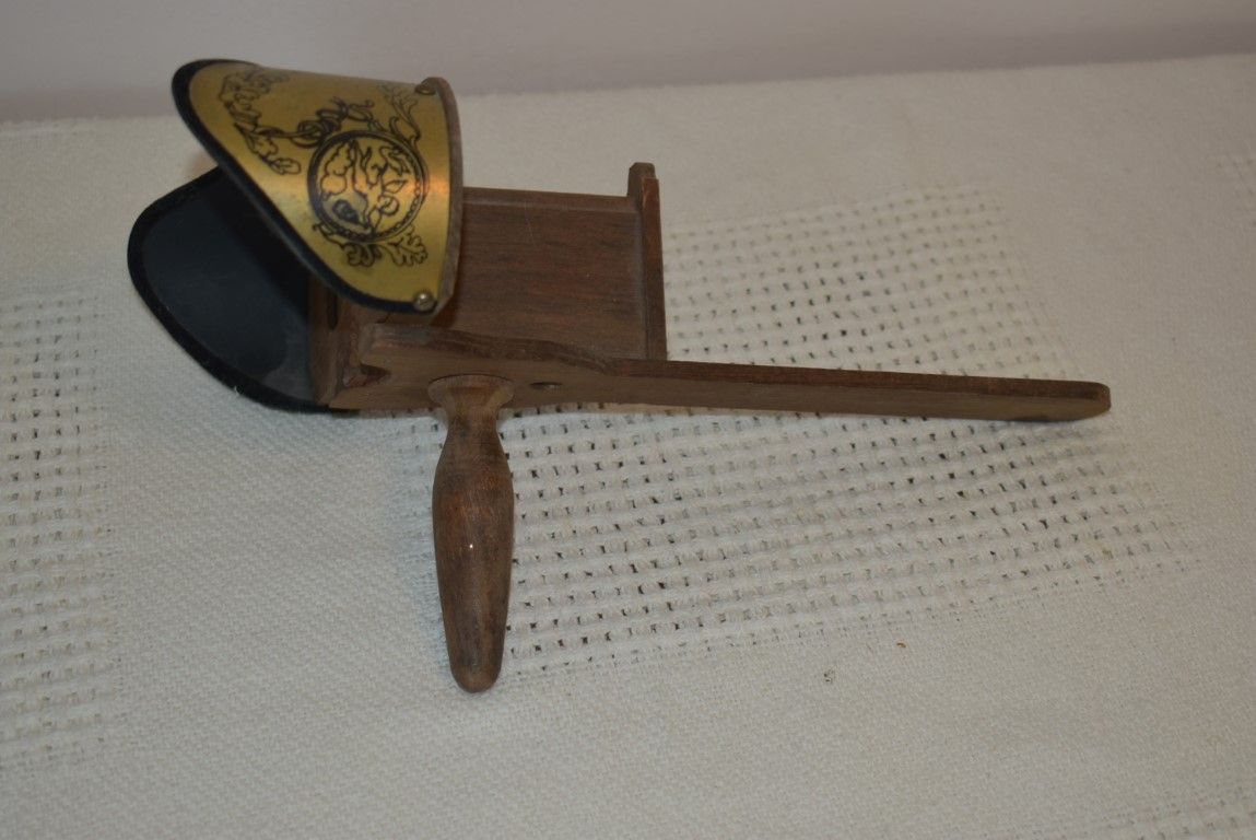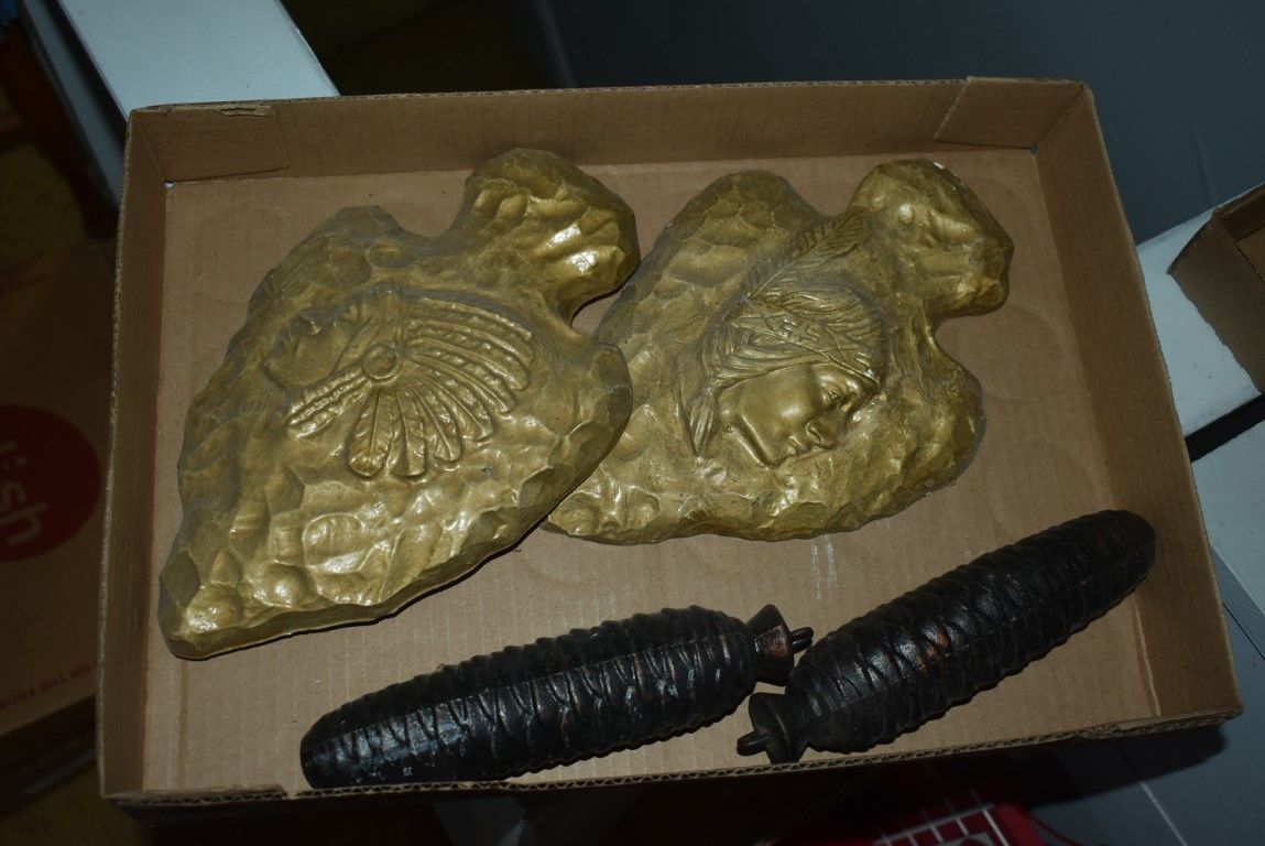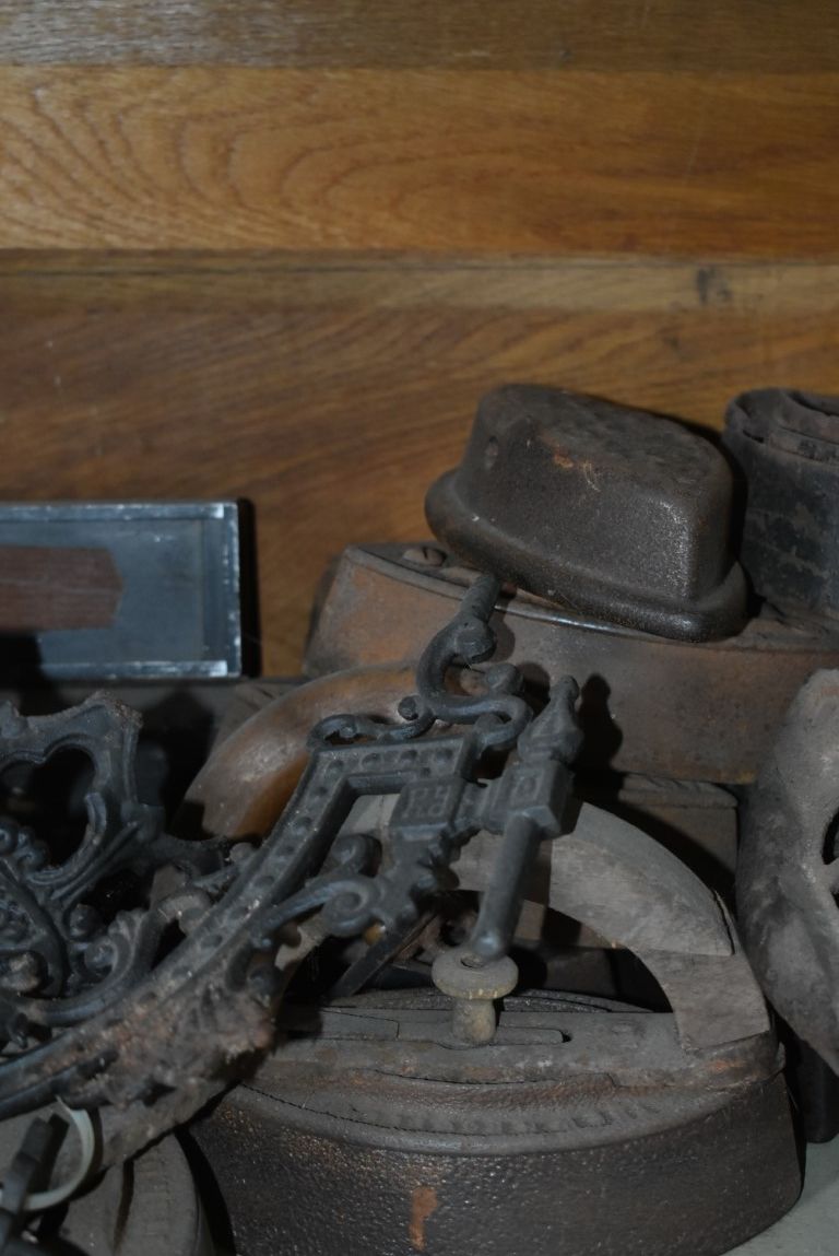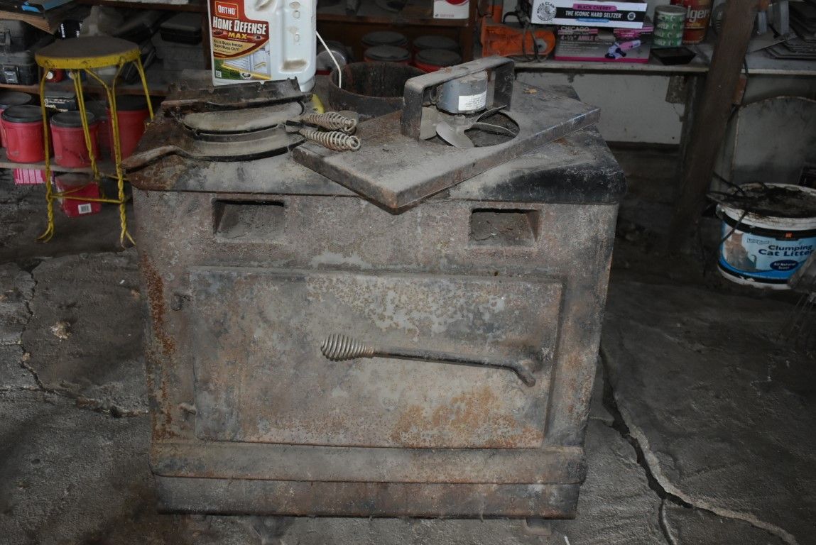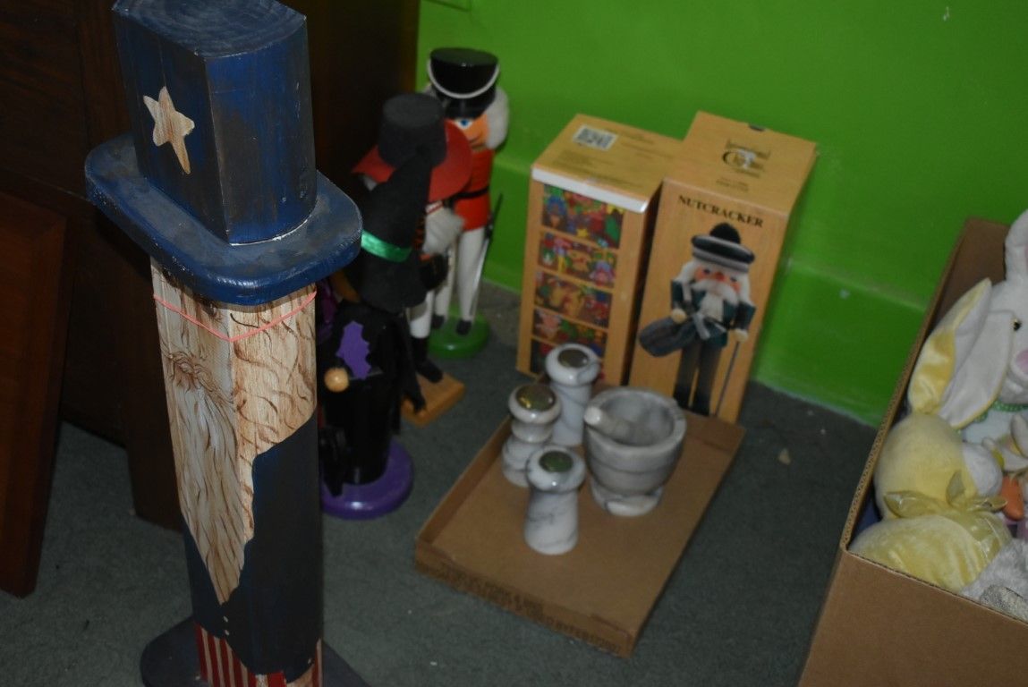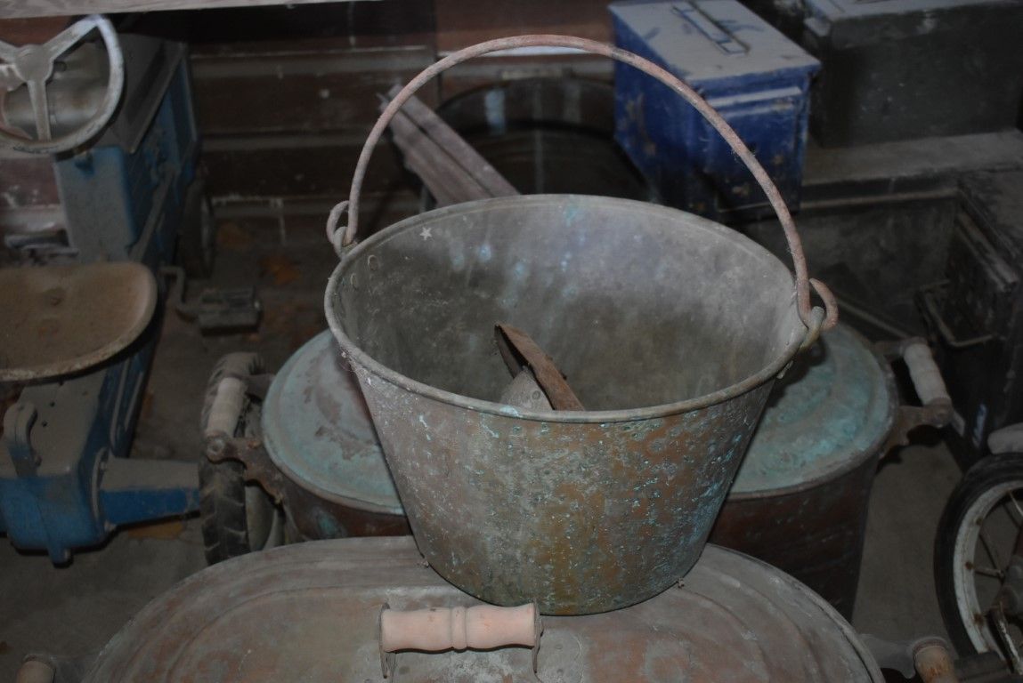 Vintage & antique: Ford pedal tractor commander 5000, old style antique wooden barrel butter churn, 2-Vintage Convex glass oval framed pics of WW1 era pictures of soldiers, Several Gone with The Wind style parlor lamps, 9 plus oil lamps (3 cobalt blue glass Aladdin Lincoln drape oil lamps), vintage Holms stereoscope, Lots of stereoscope cards, Black box w/Vintage Keystone Monarch stereoscope and cards, 2 vintage wood boxes with brass hinges and handles (1- 11 3/4x7 1/4x7 ¾ & 1-15 3/4x 9 1/2x 9 ½), antique mantle clock Adamantine Black Gilbert w/Roman columns, gone with the wind hurricane lamp (white milk glass with scalloped edge and applied bronze floral details), Vintage hurricane kerosene lamp, Marshall Ferdinand FOCH supreme allied picture 1918, General Pershing picture, glass Turkey candy dishes Amethyst & Amberina, Antique shaving kits, large assortment of sad irons, pair of vintage ice block tongs, Vintage white and gray reined marble mortar & Pestle set & Salt & Pepper set, engraved tank shell 33 T & 4”, Vintage toy machine gun, A variety of glass hens on nest and Roosters- 22 plus, African tribal war club, Cast iron piggy banks, vintage washboards, glass insulators, antique Cyclone seeder, Galvanized tubs and buckets, Brass tubs, Lg crosscut saw 64”, Antique hay knife, large artillery shells, old rocks, vintage Coca-Cola cooler, large ice block tongs, vintage egg basket, Copper boiler tubs, Wood ammo boxes, Advertising 5 gal cans (Sinclair, Champlin, Coop), Copper bucket, antique western flyer trike, American No 8 Griswold waffle iron, Printers Tray shadow box, Advertising Bricks (Ghostawn, Columbus, Buffville Ks, Caney), Vintage #88 Malden Mass. Oil can, old wagon hubs 50 inch wheels, 2 cauldron pots – 36” & 24”, Pair of Cupid oval framed pics (Cupid Asleep & Cupid Awake), vintage needle point petit point footstool, ornate gilded antique turntable Columbia masterworks, antique school desk, Antique photo album with brass latches, Christmas Nutcracker(drummer boy), over 40 Nutcrackers, old scales, Cast Indian chief bank,