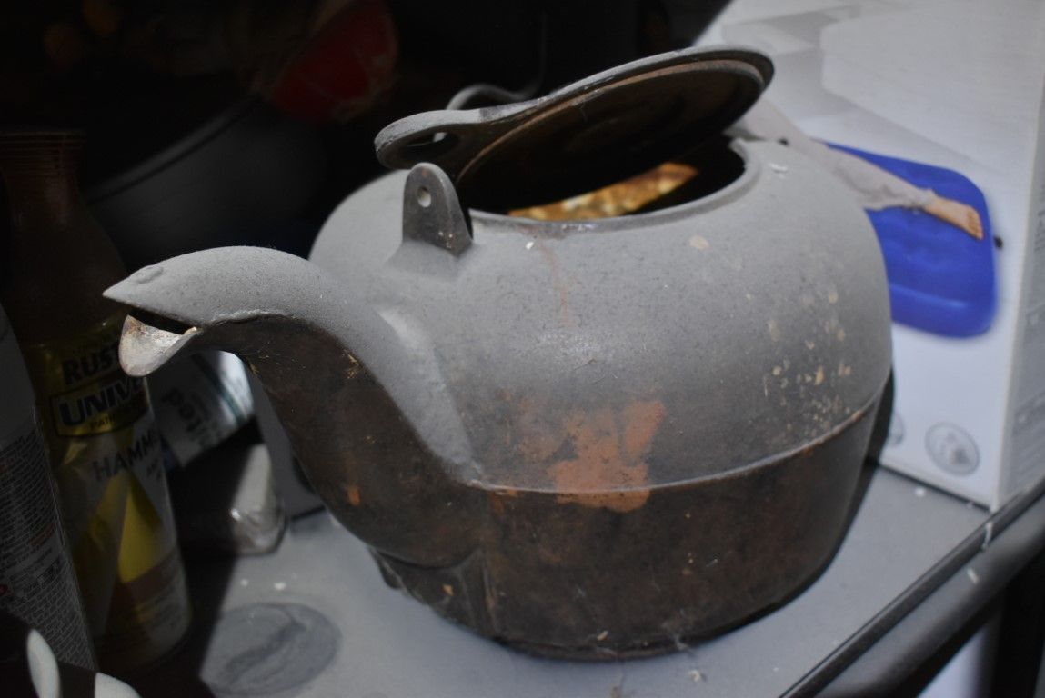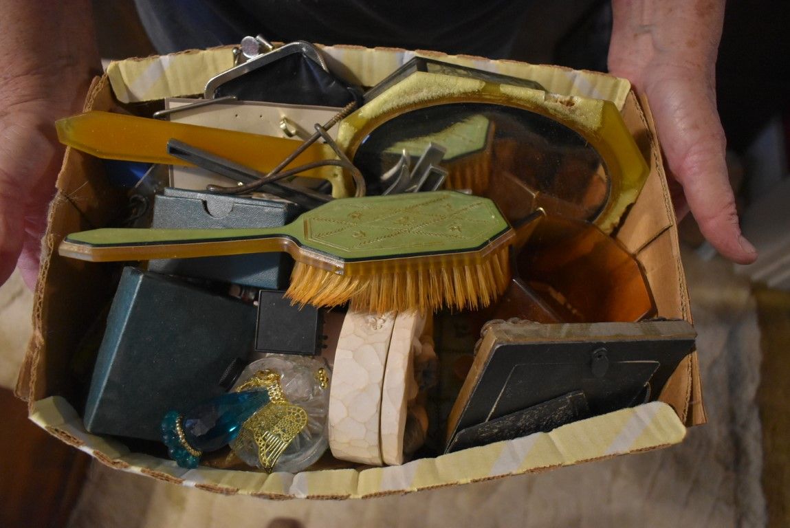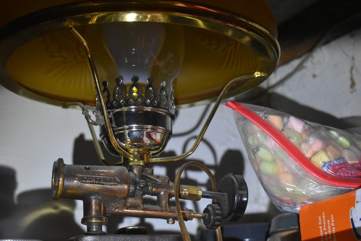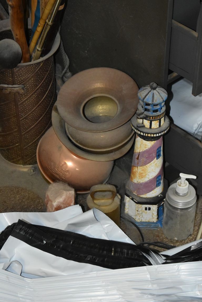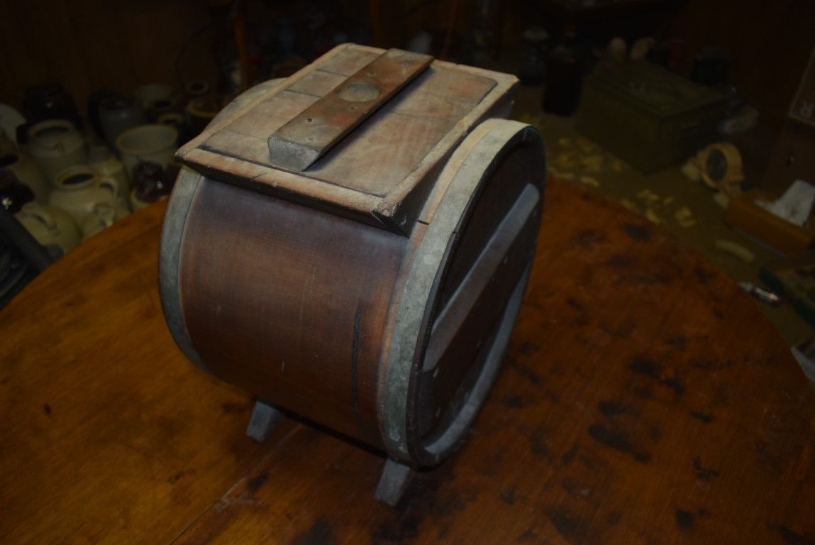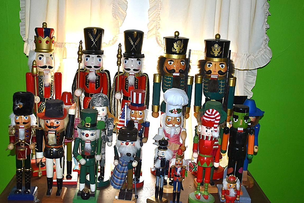 Vintage & antique: Ford pedal tractor commander 5000, old style antique wooden barrel butter churn, 2-Vintage Convex glass oval framed pics of WW1 era pictures of soldiers, Several Gone with The Wind style parlor lamps, 9 plus oil lamps (3 cobalt blue glass Aladdin Lincoln drape oil lamps), vintage Holms stereoscope, Lots of stereoscope cards, Black box w/Vintage Keystone Monarch stereoscope and cards, 2 vintage wood boxes with brass hinges and handles (1- 11 3/4x7 1/4x7 ¾ & 1-15 3/4x 9 1/2x 9 ½), antique mantle clock Adamantine Black Gilbert w/Roman columns, gone with the wind hurricane lamp (white milk glass with scalloped edge and applied bronze floral details), Vintage hurricane kerosene lamp, Marshall Ferdinand FOCH supreme allied picture 1918, General Pershing picture, glass Turkey candy dishes Amethyst & Amberina, Antique shaving kits, large assortment of sad irons, pair of vintage ice block tongs, Vintage white and gray reined marble mortar & Pestle set & Salt & Pepper set, engraved tank shell 33 T & 4”, Vintage toy machine gun, A variety of glass hens on nest and Roosters- 22 plus, African tribal war club, Cast iron piggy banks, vintage washboards, glass insulators, antique Cyclone seeder, Galvanized tubs and buckets, Brass tubs, Lg crosscut saw 64”, Antique hay knife, large artillery shells, old rocks, vintage Coca-Cola cooler, large ice block tongs, vintage egg basket, Copper boiler tubs, Wood ammo boxes, Advertising 5 gal cans (Sinclair, Champlin, Coop), Copper bucket, antique western flyer trike, American No 8 Griswold waffle iron, Printers Tray shadow box, Advertising Bricks (Ghostawn, Columbus, Buffville Ks, Caney), Vintage #88 Malden Mass. Oil can, old wagon hubs 50 inch wheels, 2 cauldron pots – 36” & 24”, Pair of Cupid oval framed pics (Cupid Asleep & Cupid Awake), vintage needle point petit point footstool, ornate gilded antique turntable Columbia masterworks, antique school desk, Antique photo album with brass latches, Christmas Nutcracker(drummer boy), over 40 Nutcrackers, old scales, Cast Indian chief bank,