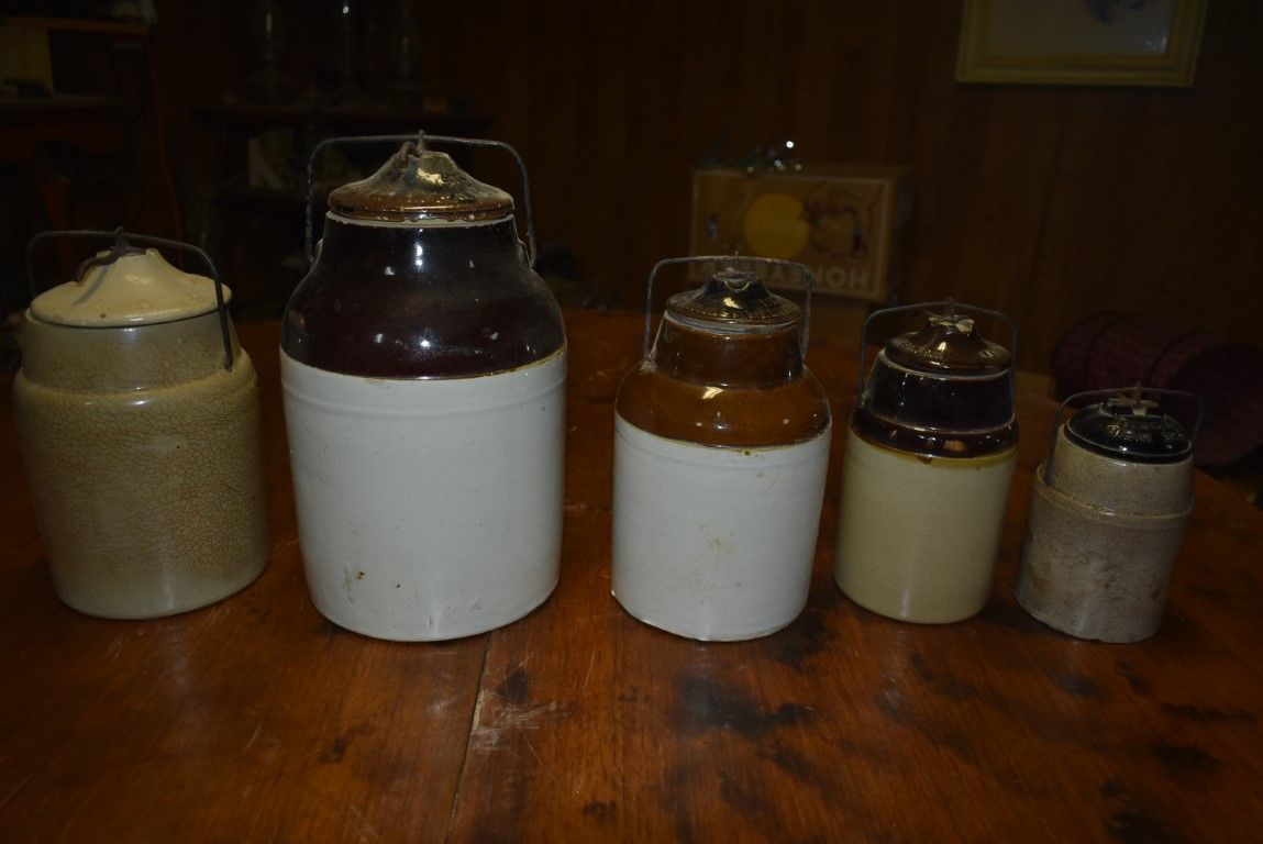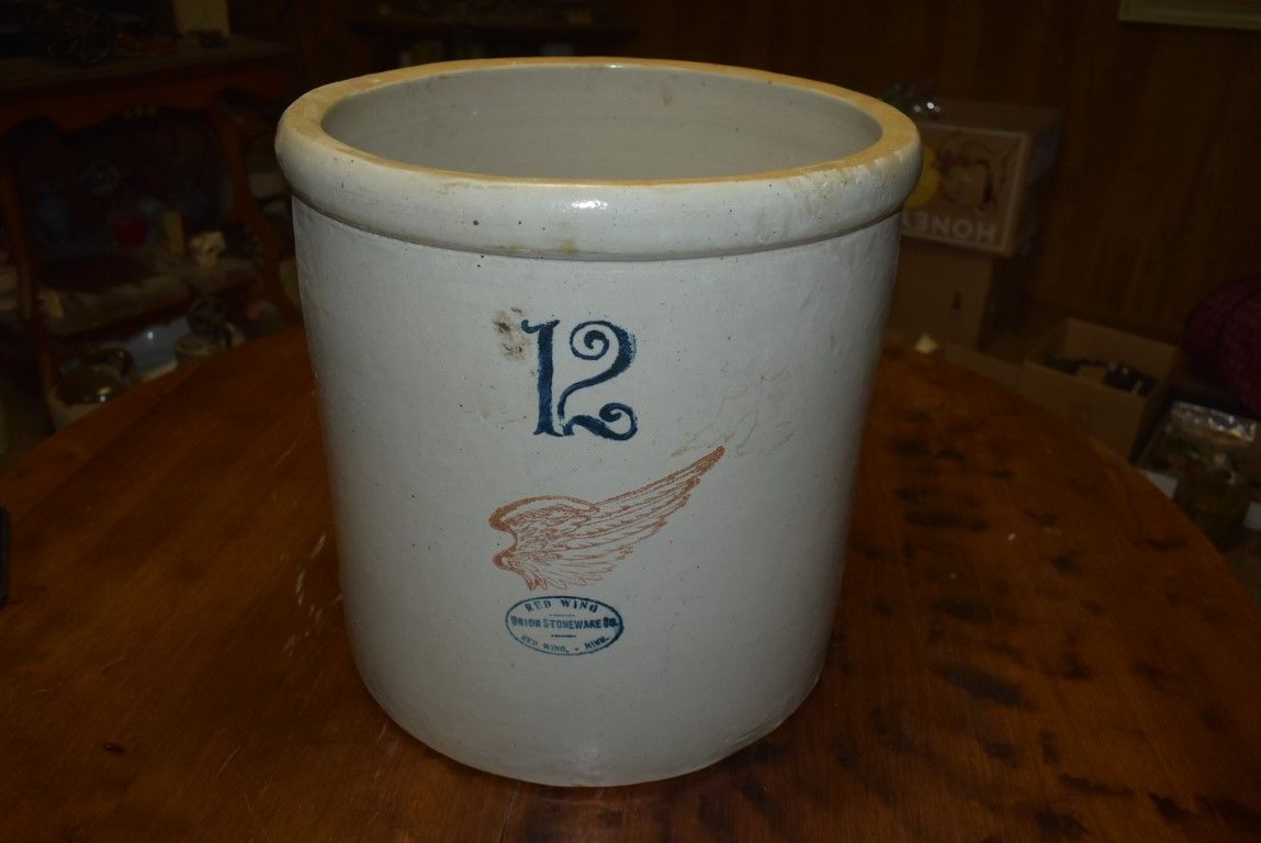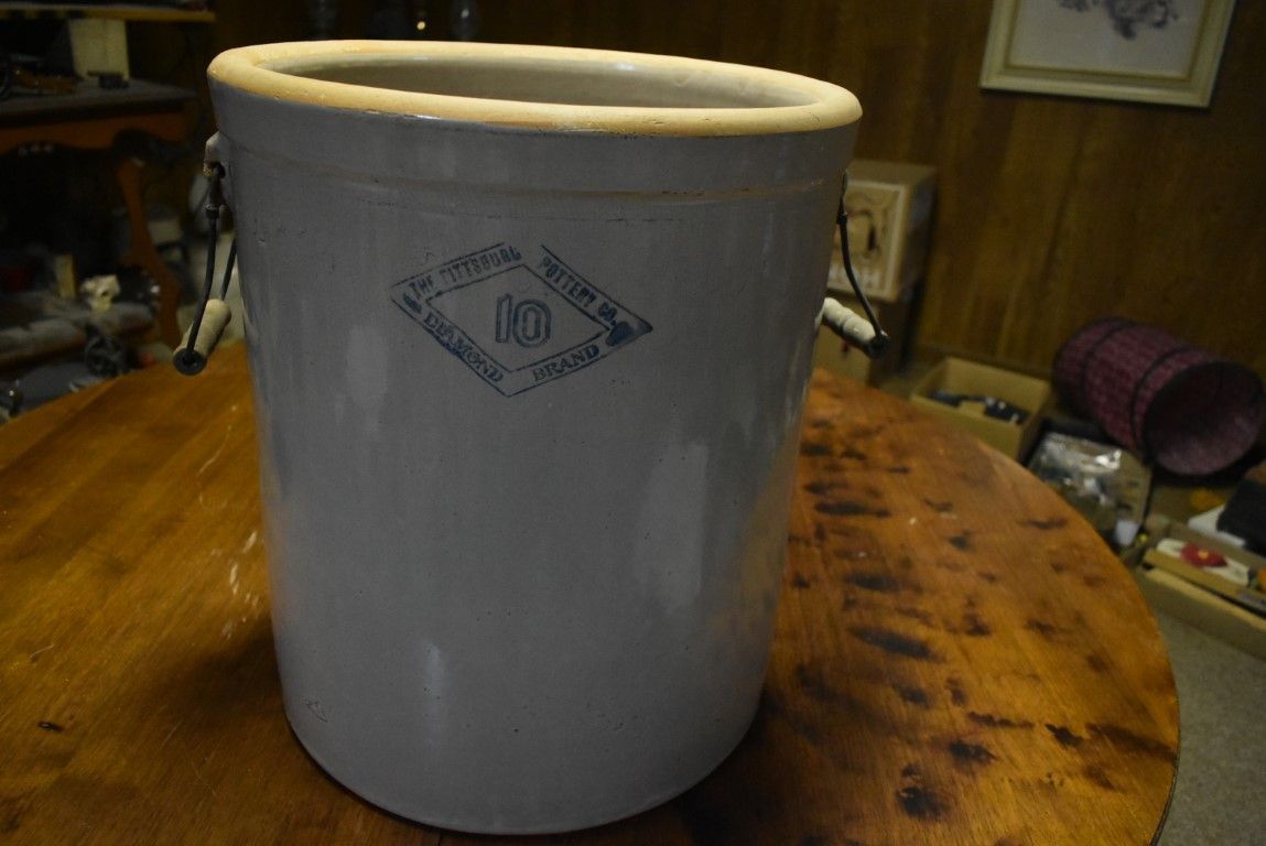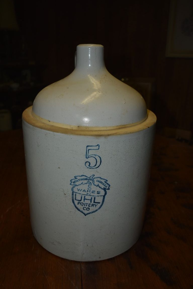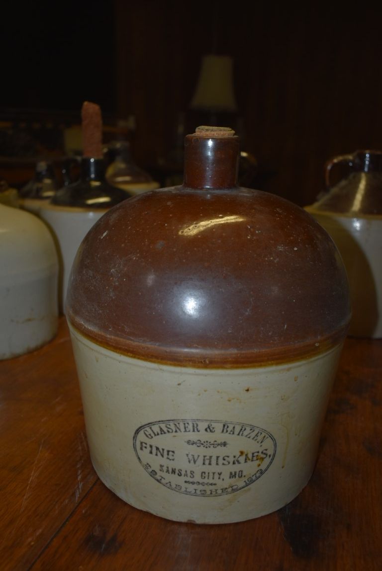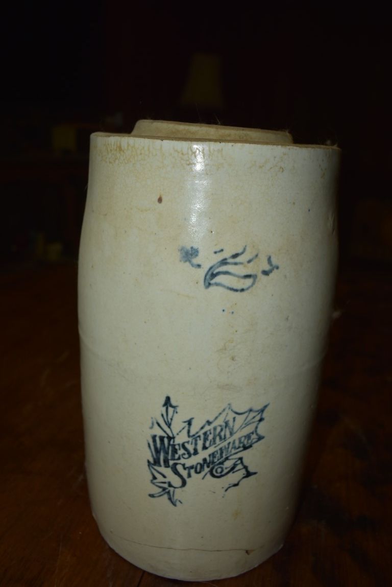 Crocks: Over 50 stoneware Crocs 3 gallon Red Wing butter churns, Half gallon and quart, 6 gallon Ruckles with handles, 8 gallon Robinson Ransbottom, 10 gallon Nelson McCoy, 5 gallon Ruckles with handles, 5 gallon Pittsburgh, 4 gallon Pittsburgh, 10 gallon Red Wing, 6 gallon Red Wing, 10 gallon Pittsburgh with handles, 12 gallon Redwing, 3 gal Whitehall, 3 gallon Red Wing, 4 gallon Red Wing with handles, 2 gallon Red Wing, 3 gallon western whiskey jug, 3 gallon blue ribbon jug, 2-2 gallon jugs, 5 gallon Red Wing jug with Waconda springs water label, Glagner & Barzen whiskey jug, Otter Blue Ribbon 1 gal whiskey jug, 1 gal The Dairy Supply Co. advertising jug, 1 & 2 gal beehive jugs, 5 gal UHL whiskey jug, 2 gal Western butter churn crock, 1 gal Redwing KO-REC Feeder, Western Buttermilk feeder & poultry 1 qt waterer, Redwing Mason Fruit jug, lots of other stoneware crocks, 3 butter churn jars with wood paddles (Daisey #40, Dazey #20 & 4qt jar), Daisy cobalt blue butter churn set with two cream mixers, Lots of other crocks & jugs