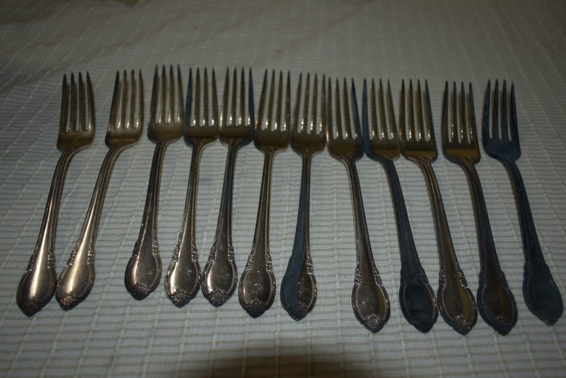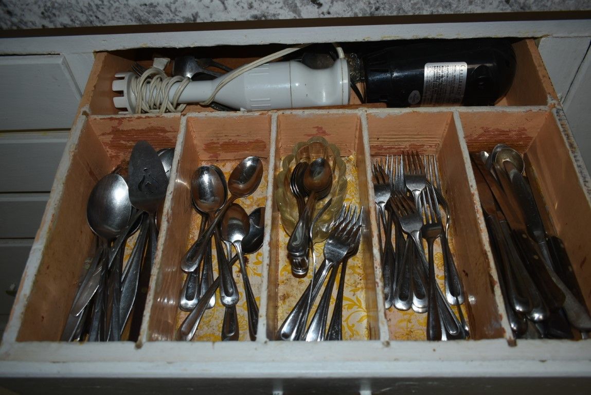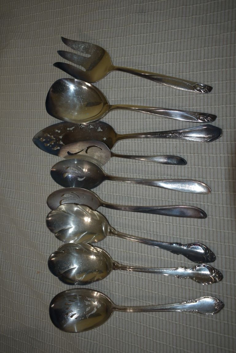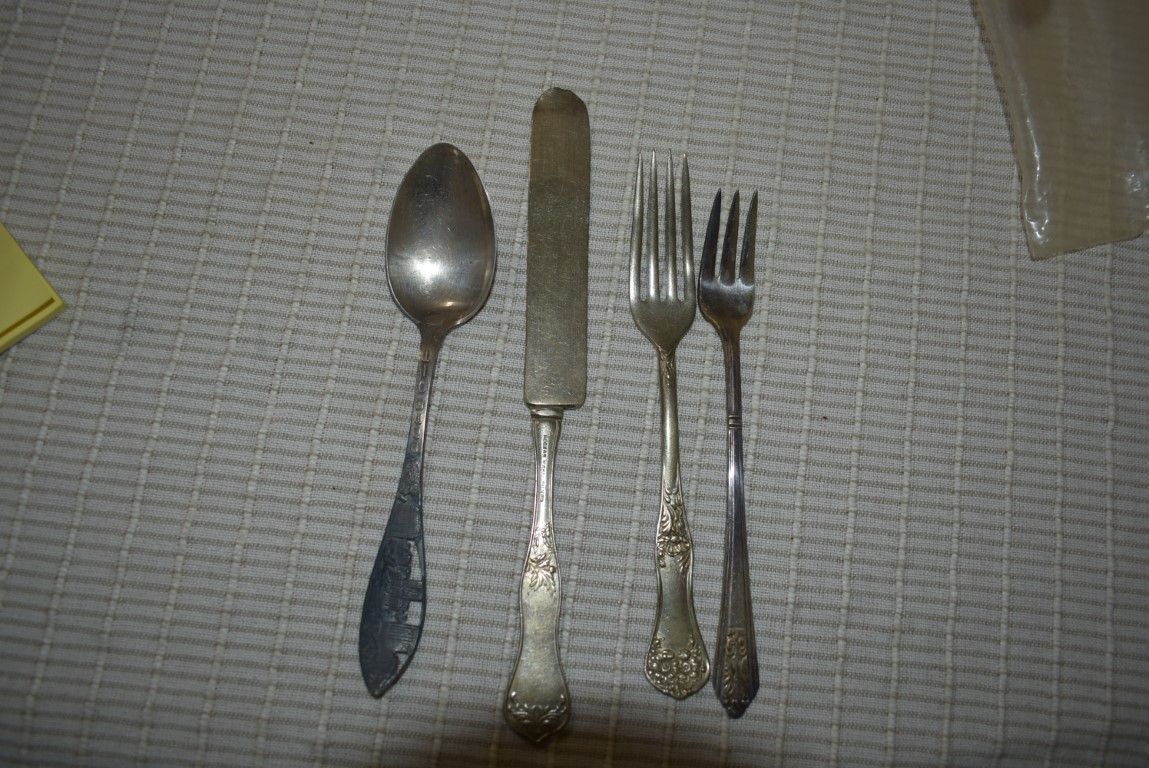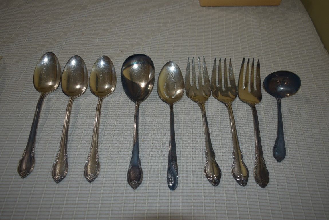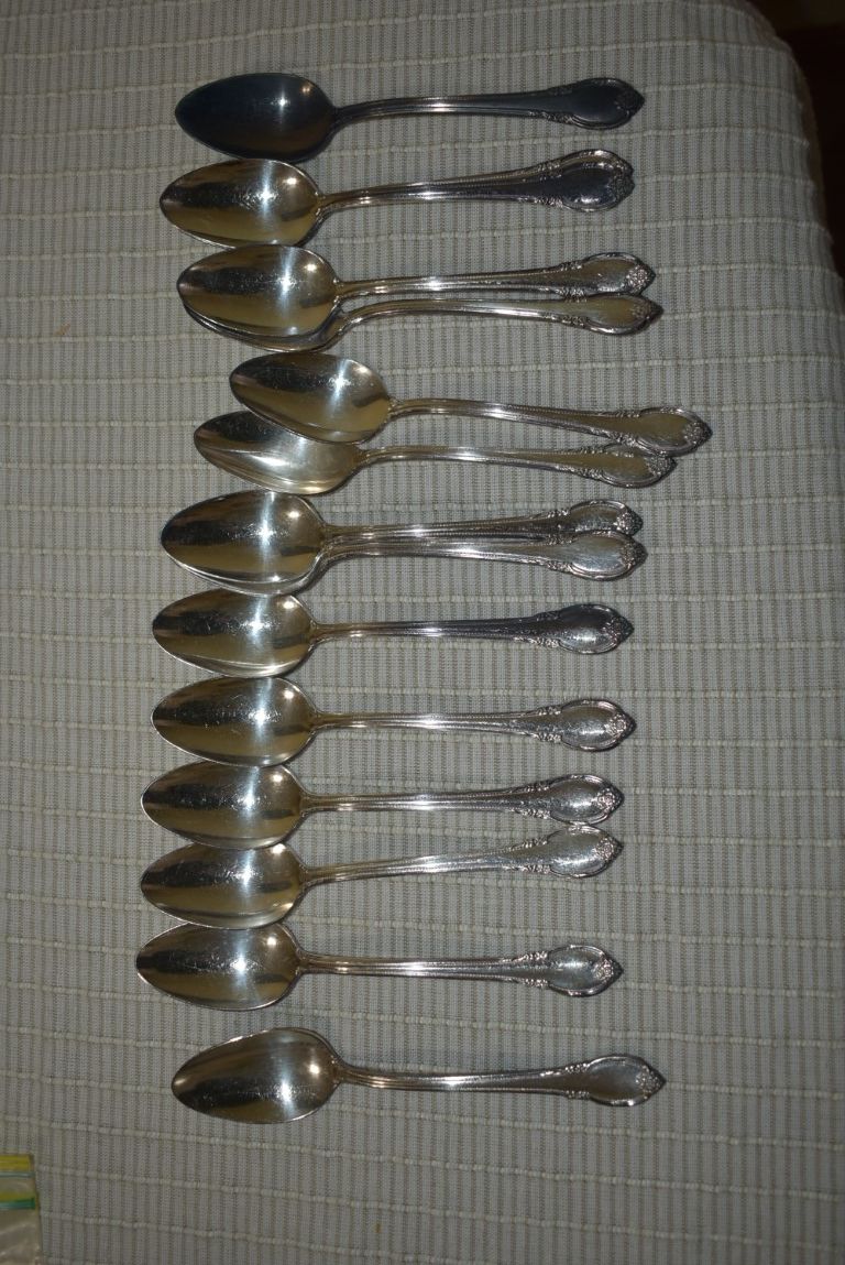 Silverware- Gold Plated silver ware from Rogers Cutlery Co. Complete setting of 8 along with accompanying place settings (20 total pieces), 12 Silver plated soup spoons 1847 Rogers Bros Remembrance, 15 Silver plated tea spoons 1847 Rogers Bros Remembrance, 15 Silver plated miscellaneous of (Community Plate Bon Bon, Shefield England, WM Rogers, 1847 Rogers, Tudor Plate Oneida Community), 9 pc mixed silver plated Holms & Edwards & 1847 Rogers Bros., 10 pc mixed silver plated (9-1847 Rogers Bros IS Remembrance, 1-Community Plate), 4pc (1 Butter knife Rogers Nickel Silver, 1 spoon stamped 99 sterling on the back and Detroit on the front, 1 Fork Pat. Sept 11 06 Rogers Nickel Silver, 1 Cocktail fork Royal Saxony Silver plate), 9 pc (2 International Deep Silver, 5 Holmes Edward IS Deep Silver, 1 1847 Rogers Bros IS Remembrance, 1 Glastonbury Silver plated), 10 pc long handled spoons 1847 Rogers Bros IS Remembrance, 17 pc (1-Cocktail fork 1847 Rogers Bros First Love, 1 long handled fork Lady Doris Silver Plate, 1- butter spreader Patd Sterling Frontenac Pattern, 1-butter knife 1847 Roger Bros AI, 1-Community Plate butter knife, 1-Olive Fork 1847 Rogers Bros., 1-Seafood fork WM Rogers, 1-Pickle fork Holmes & Edwards, 1-Butter spread knife 1847 Rogers Bros, 8 Butter knifes 1847 Rogers Bros., 12 Kitchen Knives stainless, 5 pc (1-Oneida 1881 Rogers pie server, 1-Pierced serving spoon Stainless community, 1-Stainless Pie server, 1-stainless Norwegian cheese slicer rose pattern, 1-Community stainless pierced serving spoon Rose pattern, 12 forks silver plated 1847 Rogers IS Remembrance, 10 spoons (2-Bilchrome Sheffield England pastry spoon, 2-WM Rogers & son IS, 2-1847 Rogers Bros Stainless, 1-International Silver Company PAA Exclusive, 1International Deep Silver, 1-1847 Rogers Bros IS First Love, 1-1847 Rogers Bros IS Remembrance), 12 silver plated forks 1847 Rogers Bros IS Remembrance,