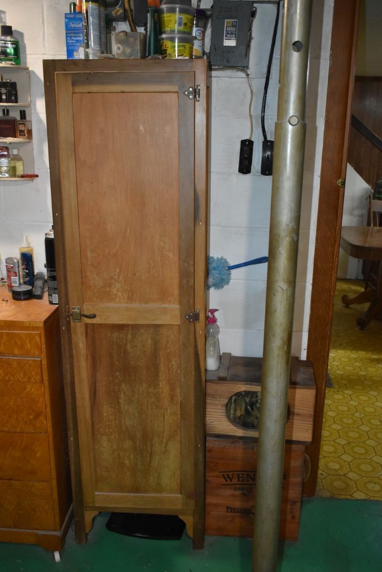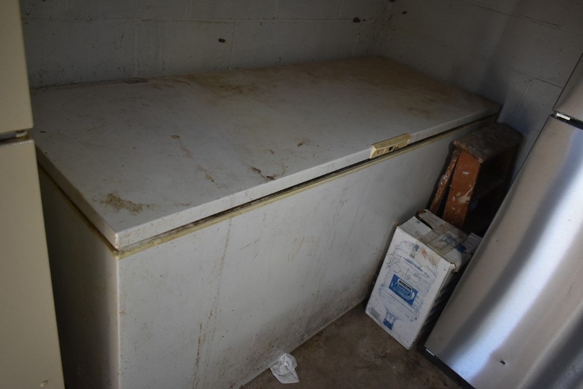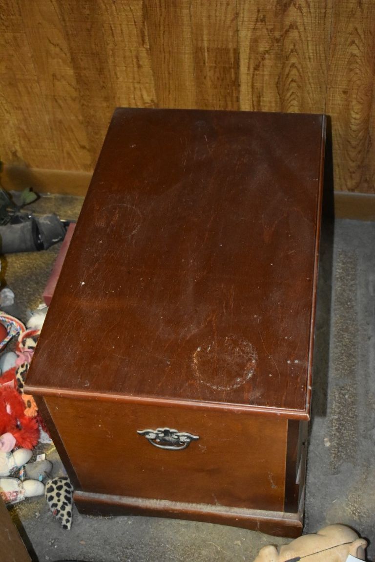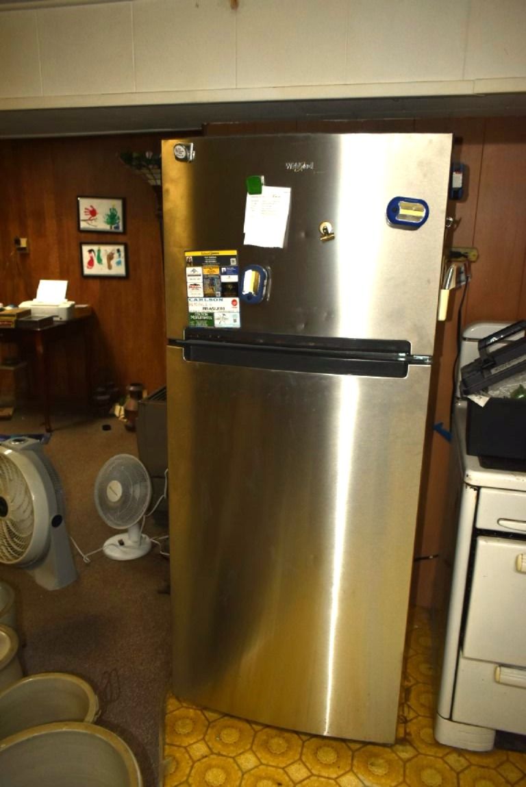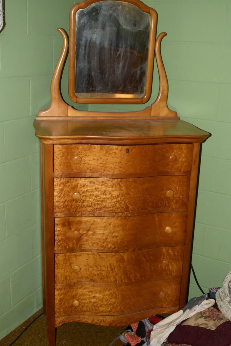 Appliances & Furniture: Maytag upright freezer, stainless refrigerator, chest deep freezer 73 by 28, stainless Whirlpool refrigerator, RCA refrigerator, 31 inch flat screen Toshiba TV, 50” flat screen TV, 55” flat screen TV, three drawer dresser with large mirror, dark wood rocker, wood gun cabinet, drop leaf kitchen table with Leaf’s, Full vintage headboard w/queen box springs and mattress, Blue painted 5 drawer dresser, Wood wash basin, Cedar Chest 45Lx14Dx20T, wood cedar chest 46Lx19Tx17D with shelf, 4 tier wood bookcase 69Tx25Wx11D,