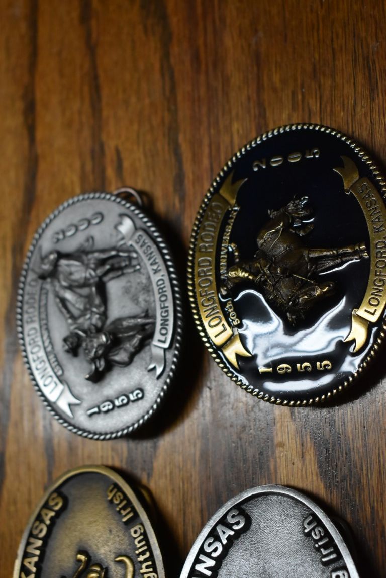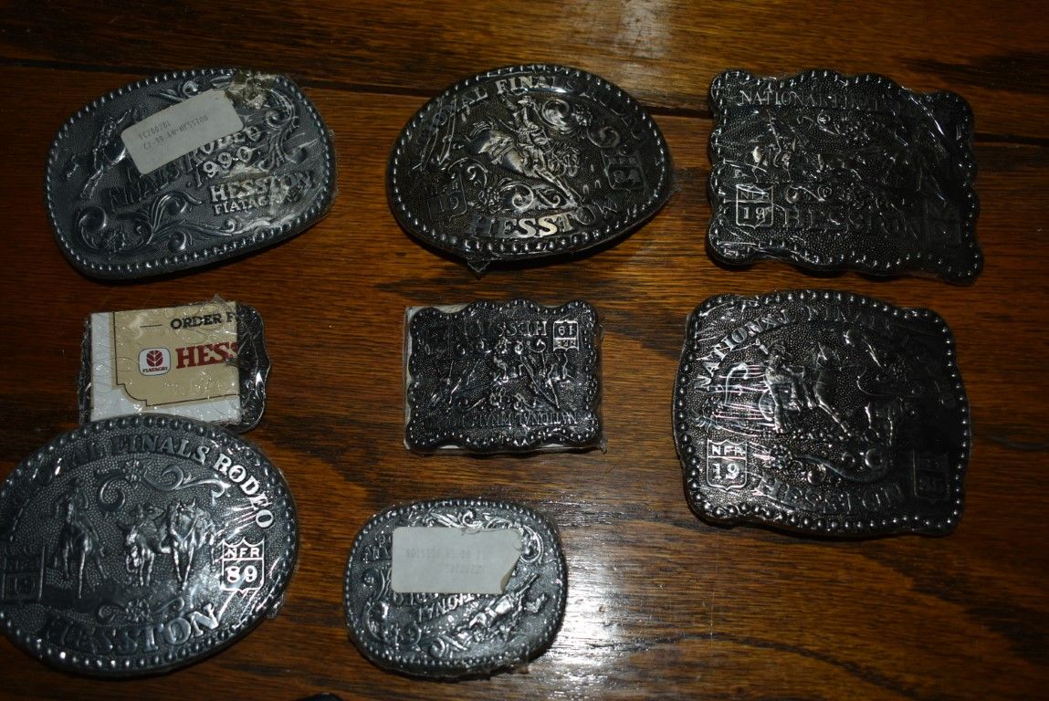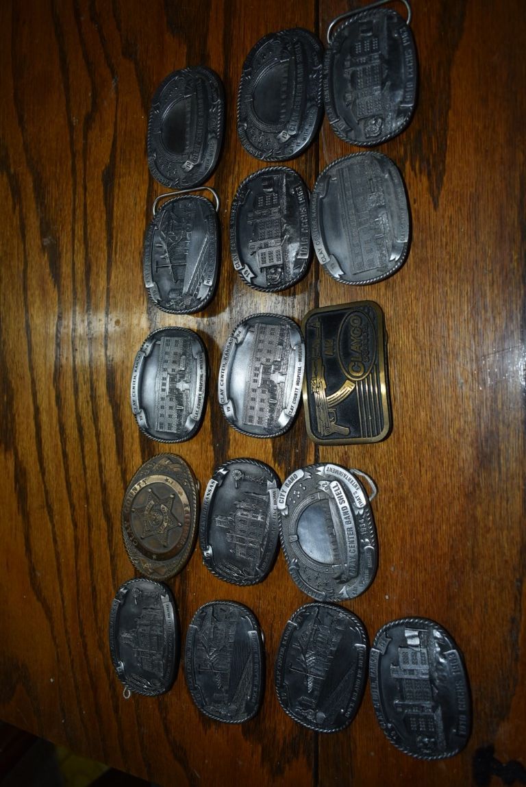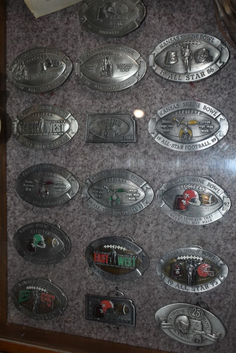 Lots of belt buckles (Hesston, Clay County, Clay Center, Longford rodeo, Chapman, Oak Hill,1860 Pony Express Rock Creek Station, Vietnam, Ks Shrine Bowl set in Shadow Box, And a few more,