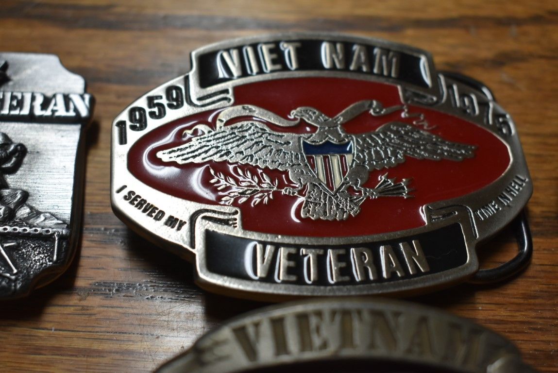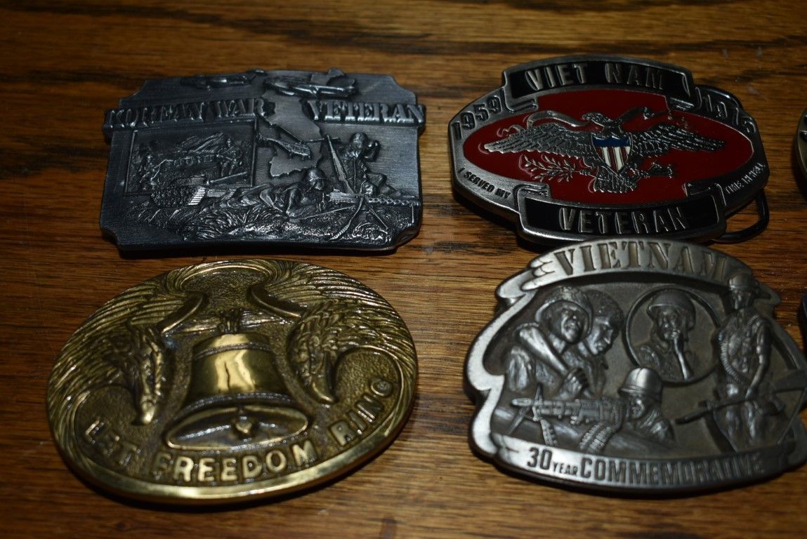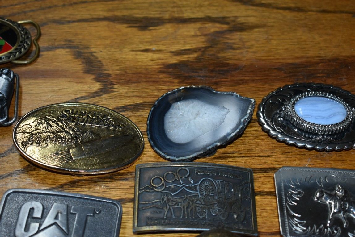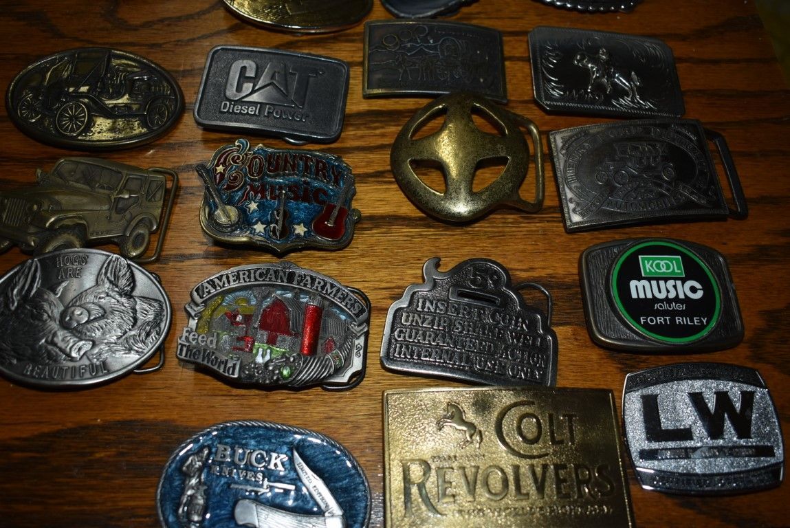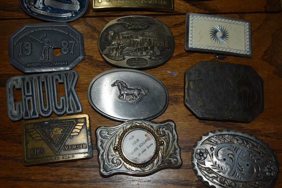 Lots of belt buckles (Hesston, Clay County, Clay Center, Longford rodeo, Chapman, Oak Hill,1860 Pony Express Rock Creek Station, Vietnam, Ks Shrine Bowl set in Shadow Box, And a few more,