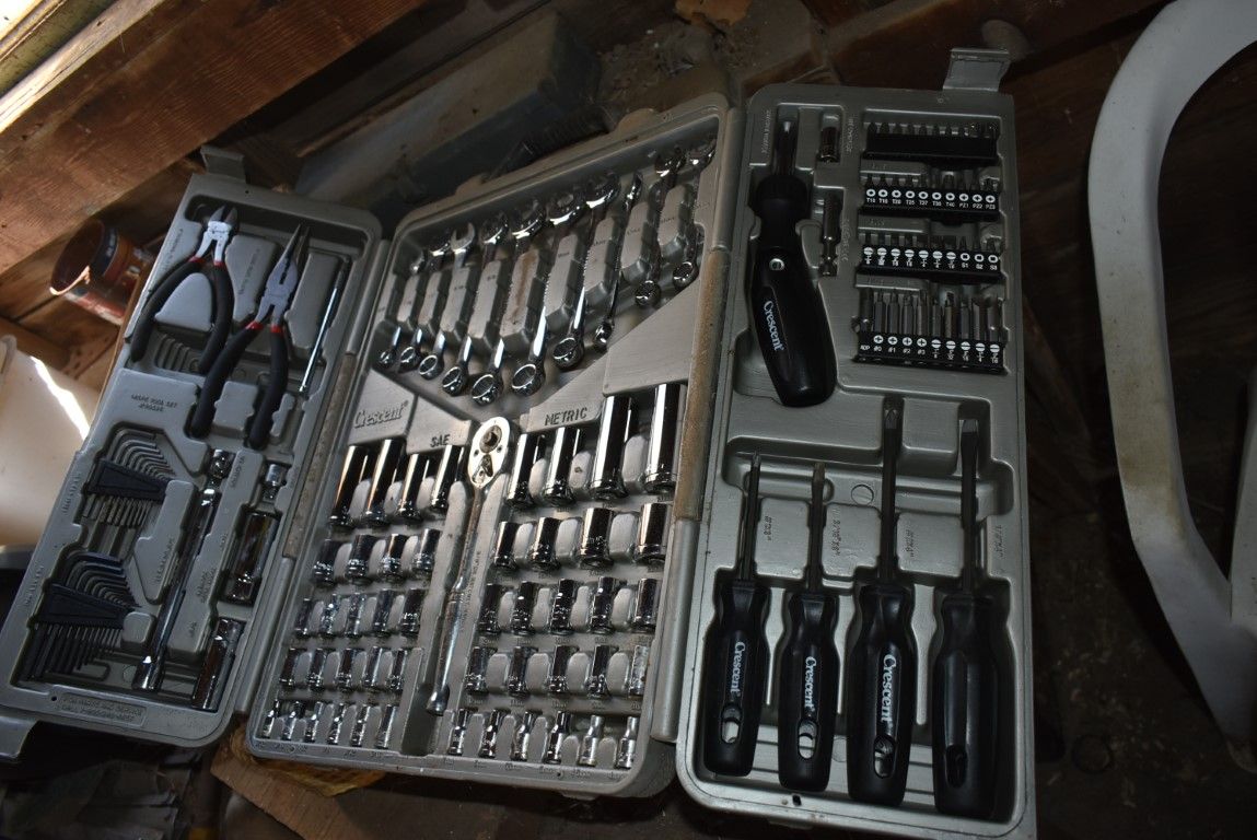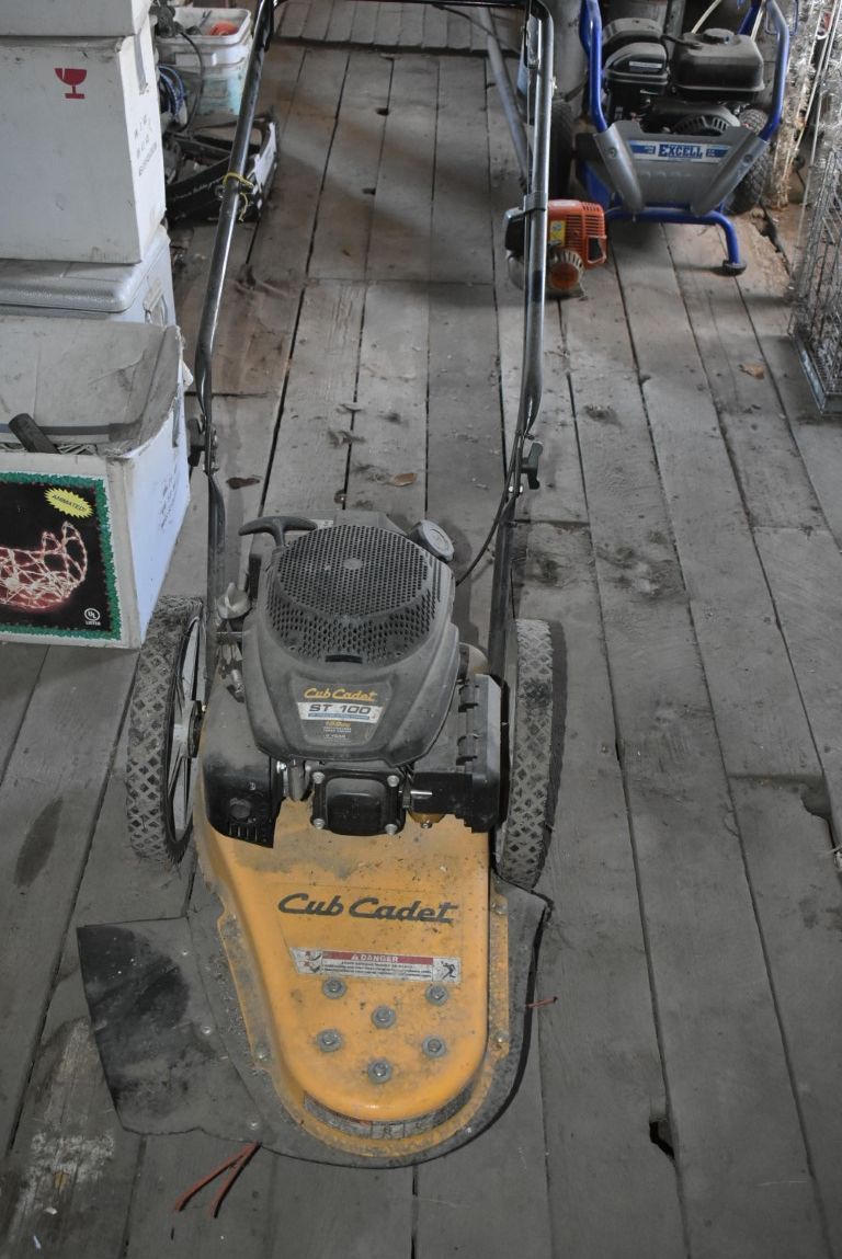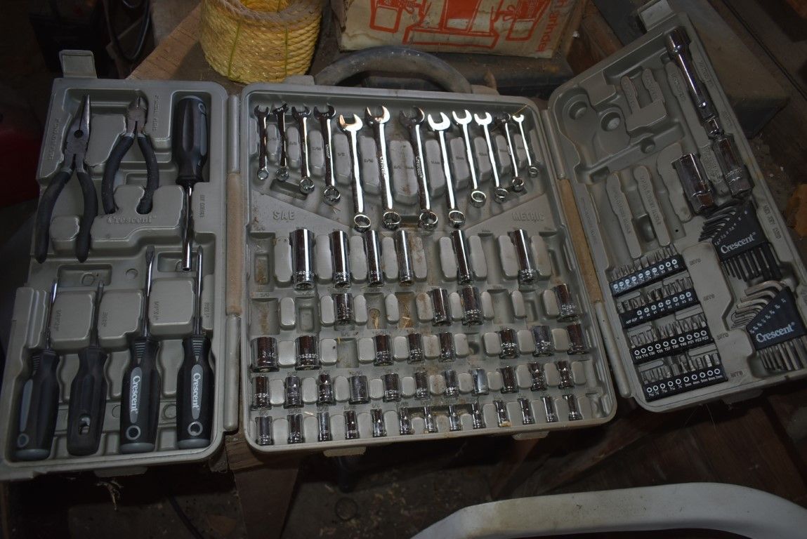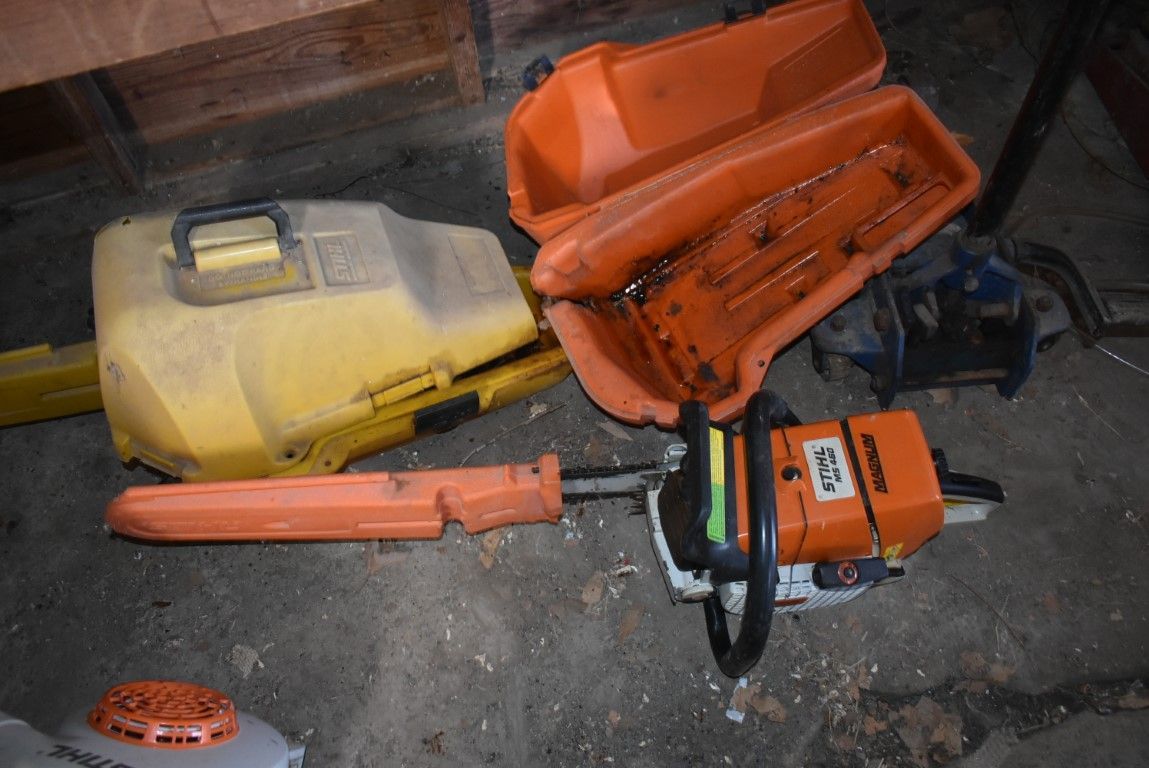 Yard, Tools & Misc: Lots of different tools, 40 inch working platform, master force 14 gallon 6 1/2 HP wet dry vac on cart, Costco 16 foot folding step ladder, New metal shelf in box, Lasko fan new inbox, Stihl KM 110R weed eater, Miscellaneous yard tools long handled, crowbars, hammers, wood stoves, Toolmaster 6 inch grinder, Central Pneumatic air compressor-21 gal., Reapp power washer, lots of tools (come alongs, ratchet sets, tool boxes), wall mounted drill press, set of car ramps, Murray 21” self propelled mower, log chains, 2-20 ton bottle jacks, 3 ton floor jacks, Misc welding items, Old Wilson arc welder, nice appliance Pull behind yard sweep, dolly, Battery Charger, new metric & SAE Crescent tool set, 2 micrometer sets, Torc wrenches, Several metal and plastic tool boxes, Stihl BG50 gas blower, 2 ton floor jack, 3 ton floor jack, Craftsman tap & die set, Stihl 200T chain saw 24”, Cub Cadet gas powered week eater, Excel 3100 PSI power washer, Stihl HT-101 pole saw, 110 ft water noses (new), Halogen work light, T- post, two ton cherry picker, 10 gallon contractor shop vac, HD shop vac 12 gal 6.5 hp, more items to unbox.