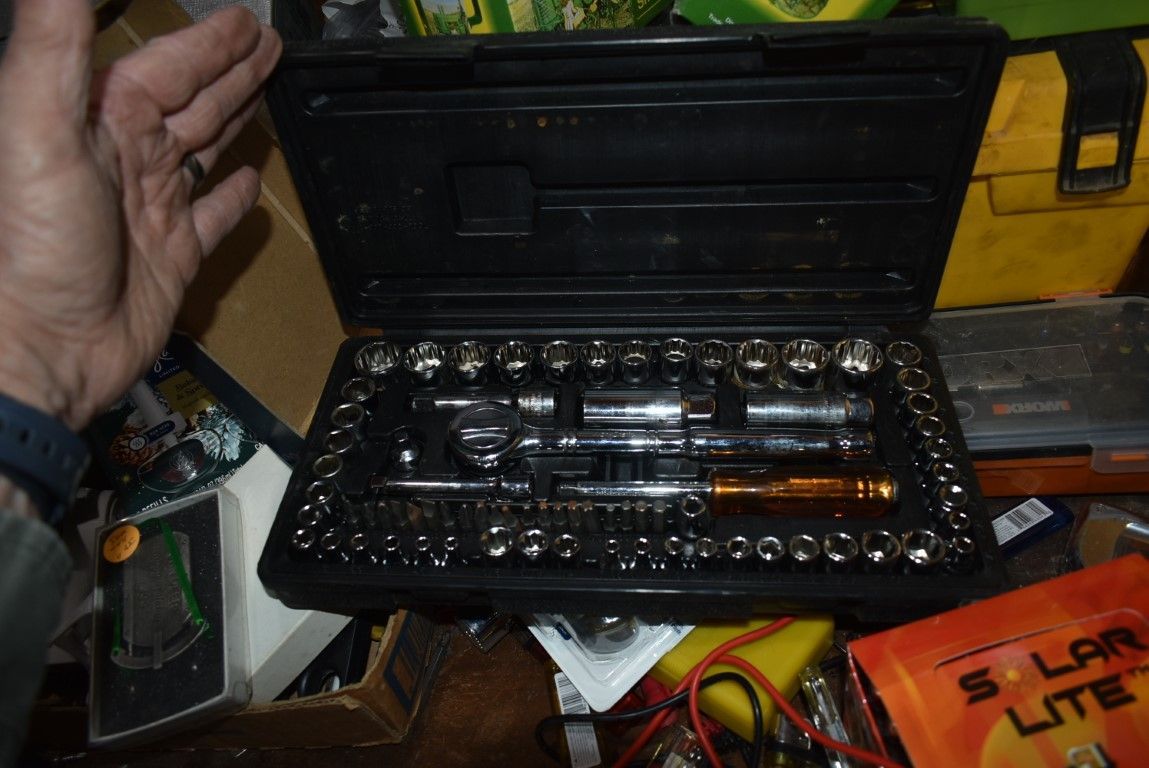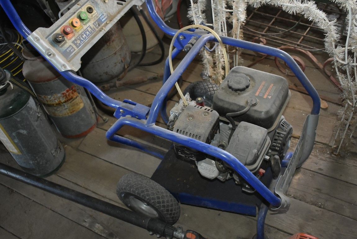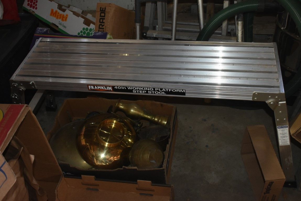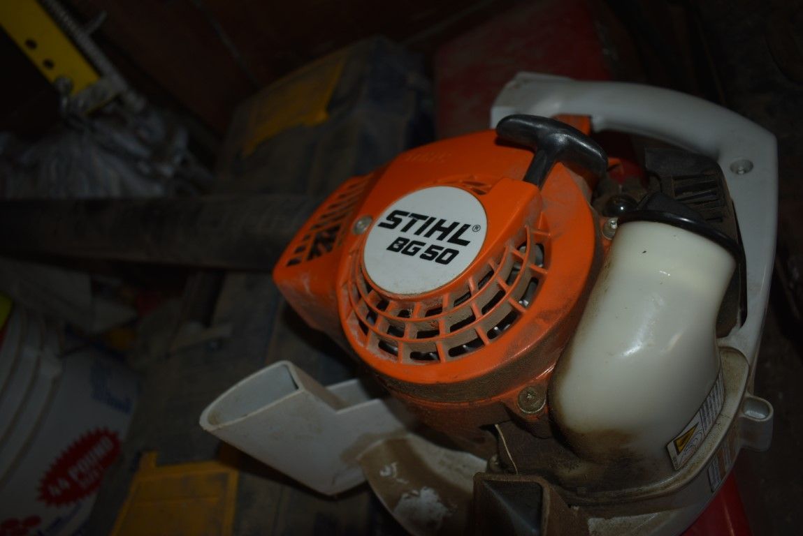 Yard, Tools & Misc: Lots of different tools, 40 inch working platform, master force 14 gallon 6 1/2 HP wet dry vac on cart, Costco 16 foot folding step ladder, New metal shelf in box, Lasko fan new inbox, Stihl KM 110R weed eater, Miscellaneous yard tools long handled, crowbars, hammers, wood stoves, Toolmaster 6 inch grinder, Central Pneumatic air compressor-21 gal., Reapp power washer, lots of tools (come alongs, ratchet sets, tool boxes), wall mounted drill press, set of car ramps, Murray 21” self propelled mower, log chains, 2-20 ton bottle jacks, 3 ton floor jacks, Misc welding items, Old Wilson arc welder, nice appliance Pull behind yard sweep, dolly, Battery Charger, new metric & SAE Crescent tool set, 2 micrometer sets, Torc wrenches, Several metal and plastic tool boxes, Stihl BG50 gas blower, 2 ton floor jack, 3 ton floor jack, Craftsman tap & die set, Stihl 200T chain saw 24”, Cub Cadet gas powered week eater, Excel 3100 PSI power washer, Stihl HT-101 pole saw, 110 ft water noses (new), Halogen work light, T- post, two ton cherry picker, 10 gallon contractor shop vac, HD shop vac 12 gal 6.5 hp, more items to unbox.