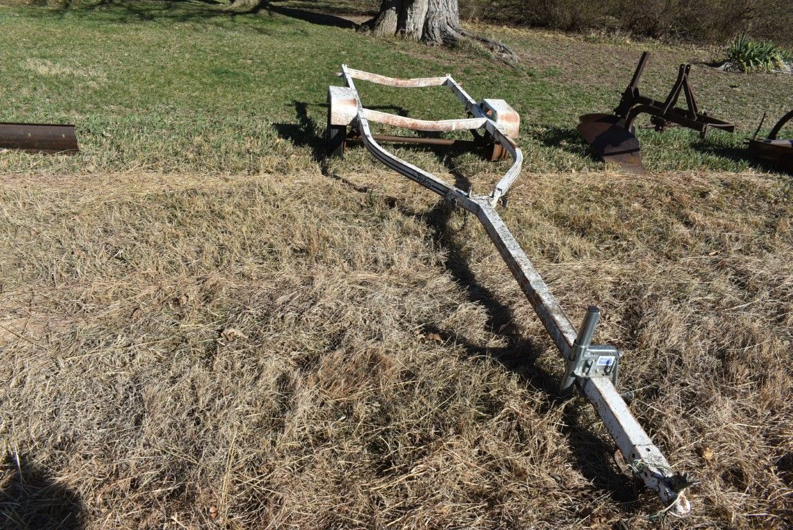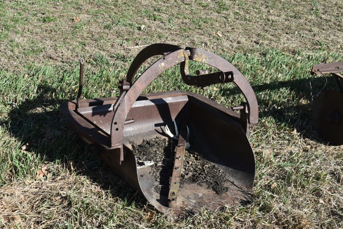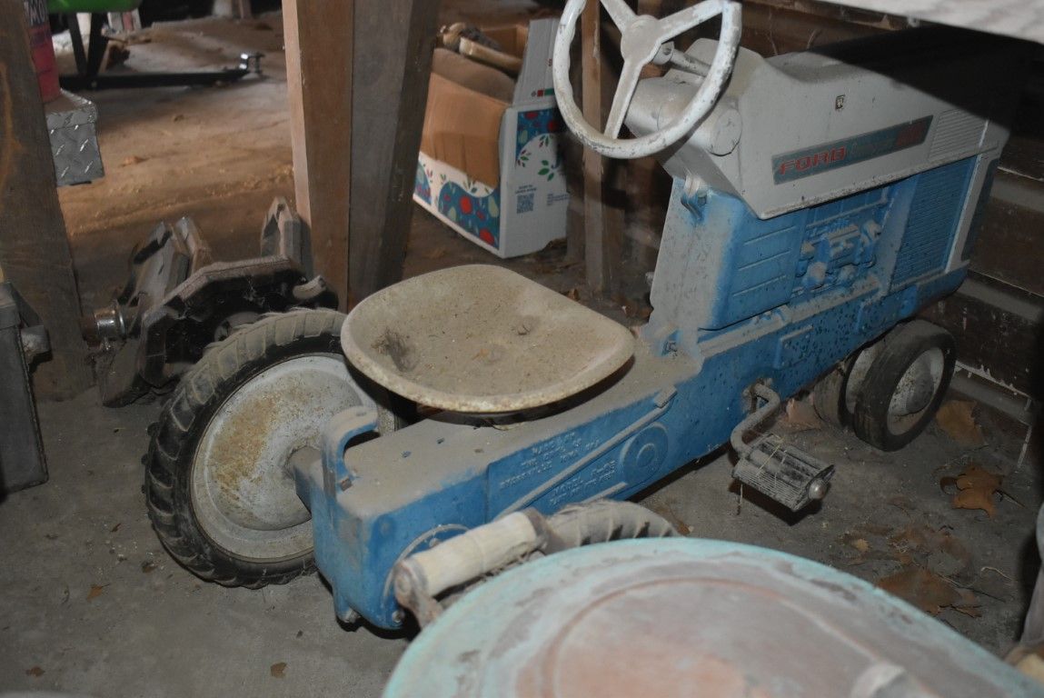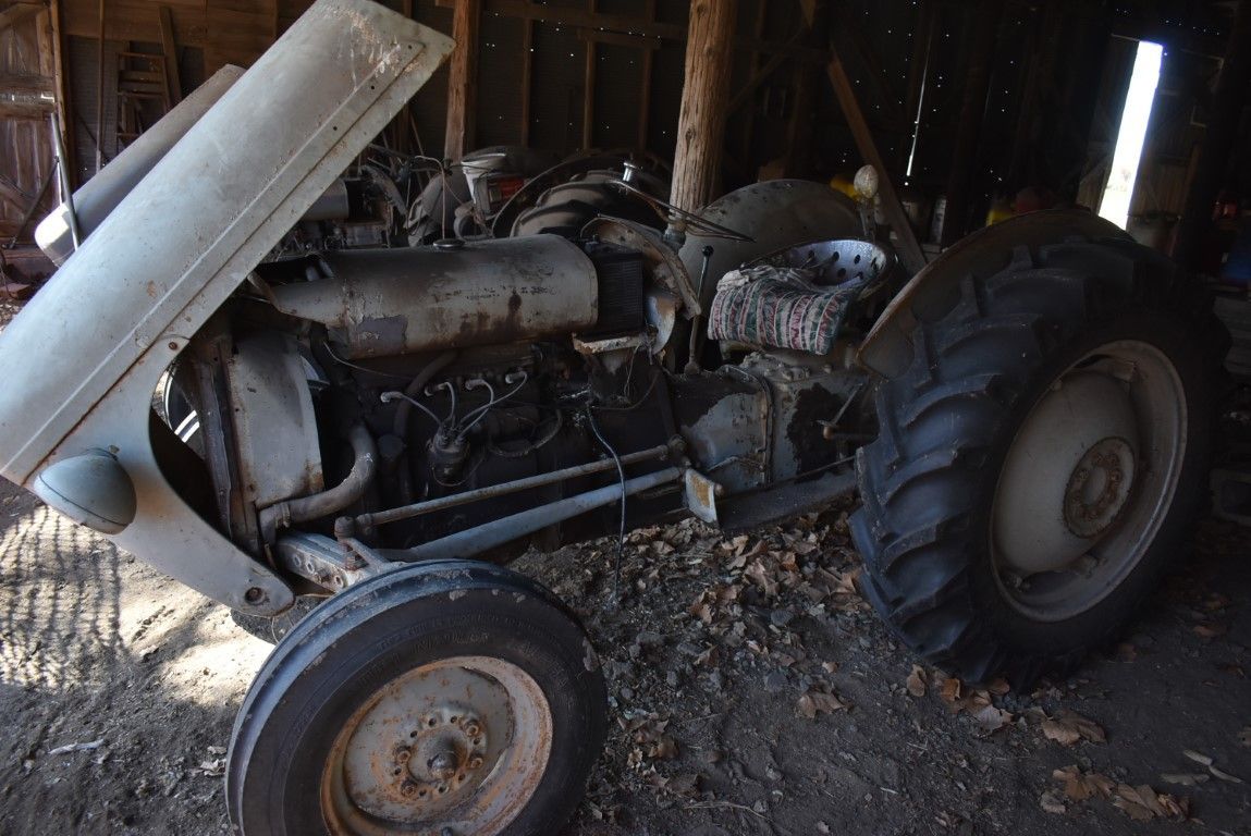 Tractors & Equipment: 2 Ferguson tractors Z120A620 (runs) & Z120A800, 3 pt Agric AL50 roto tiller, Tandem axle trailer 12’, antique dump rake, Sm 3 pt harrow, 3 pt 7’ blade, Rolco boat trailer, 3 pt 2 bottom plow, Vintage dirt scoop, Single gang disk, 5 ft bush hog mower, seed packer, JD pull behind yard dump wagon 44x32,