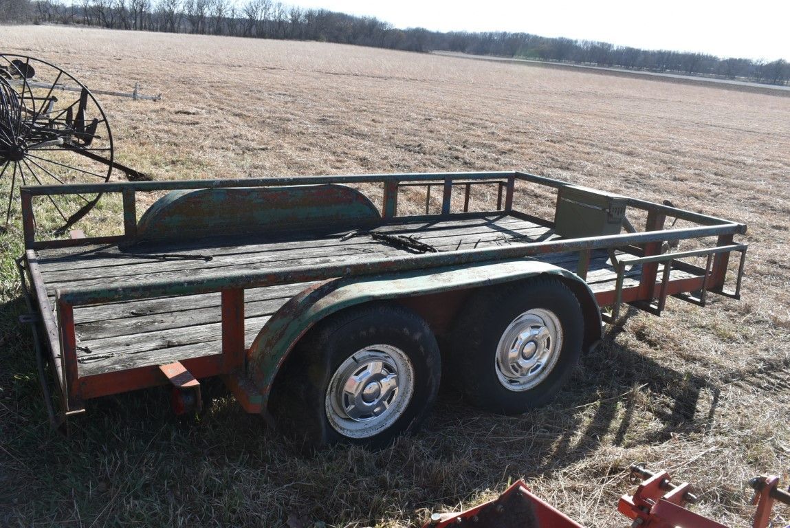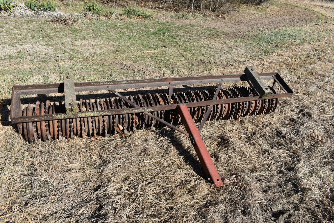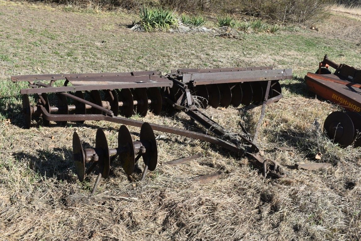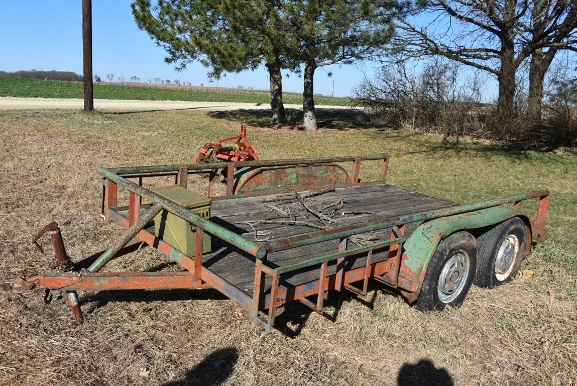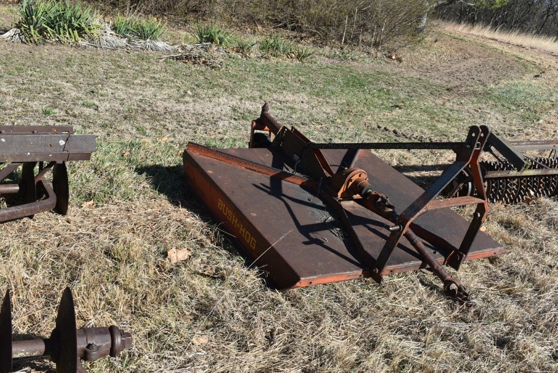 Tractors & Equipment: 2 Ferguson tractors Z120A620 (runs) & Z120A800, 3 pt Agric AL50 roto tiller, Tandem axle trailer 12’, antique dump rake, Sm 3 pt harrow, 3 pt 7’ blade, Rolco boat trailer, 3 pt 2 bottom plow, Vintage dirt scoop, Single gang disk, 5 ft bush hog mower, seed packer, JD pull behind yard dump wagon 44x32,